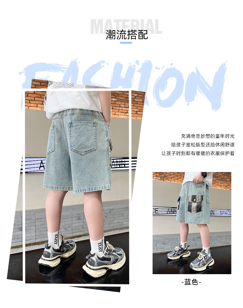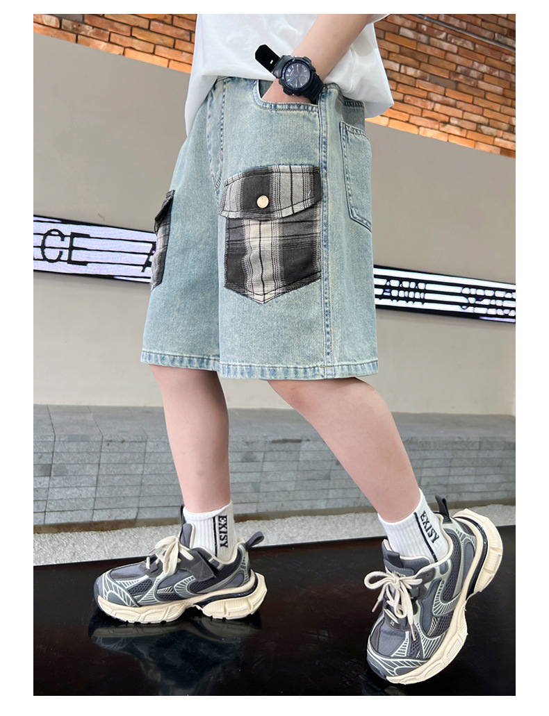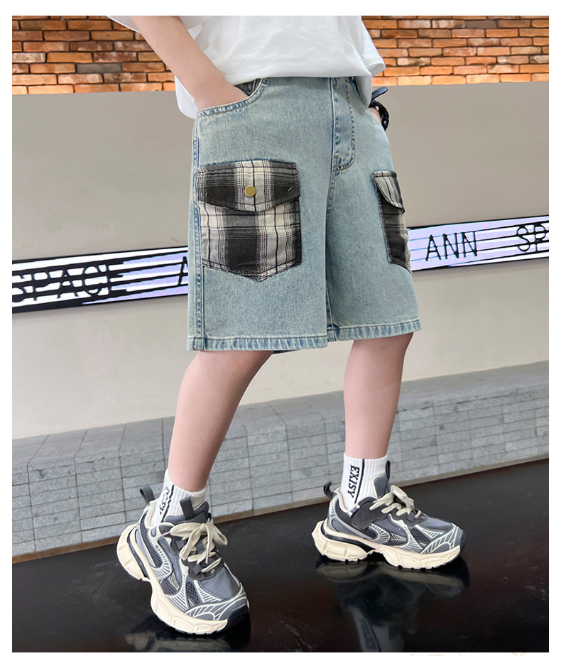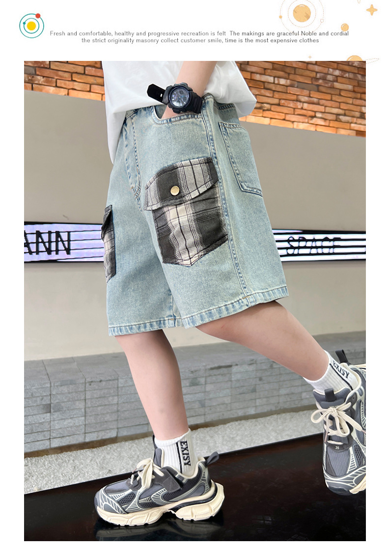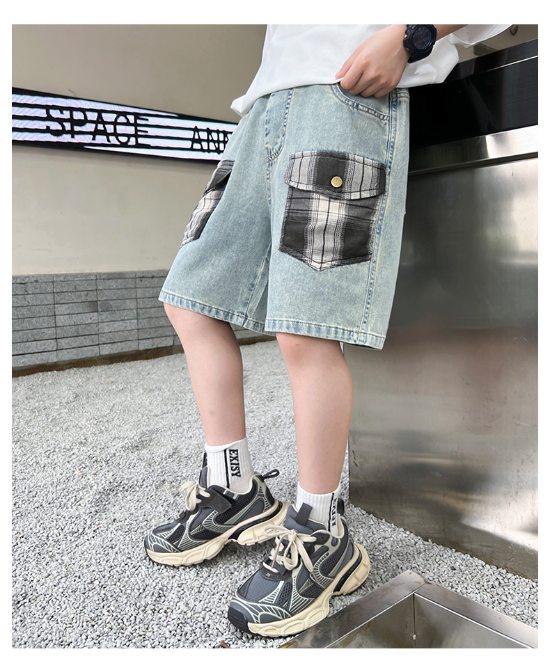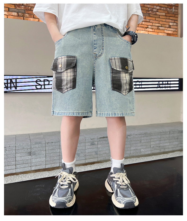남학생 여름 청바지 2024 새로운 스타일 중 큰 어린이 여름 바지 어린이 여름 소년 5 점 바지 유행 중간 길이 바지스토어 가기
