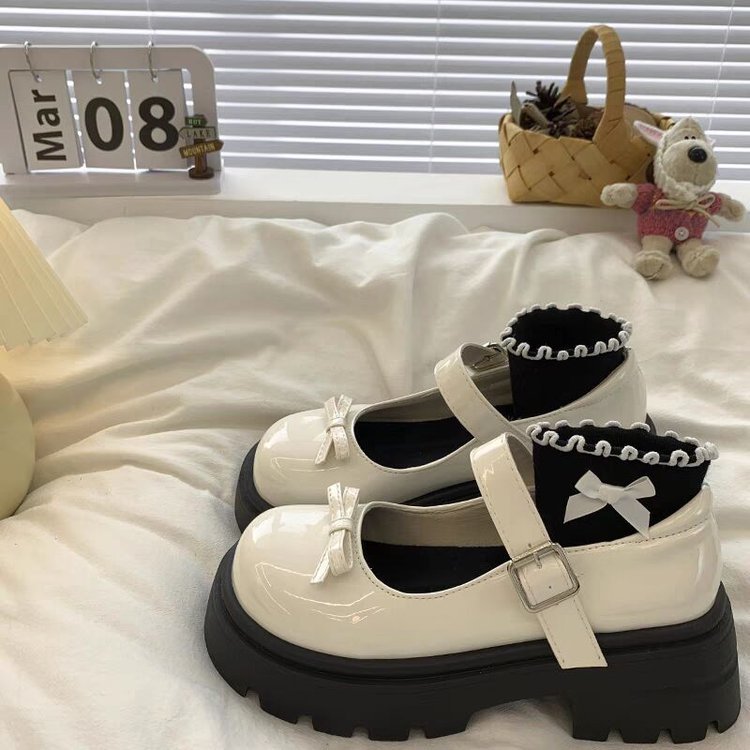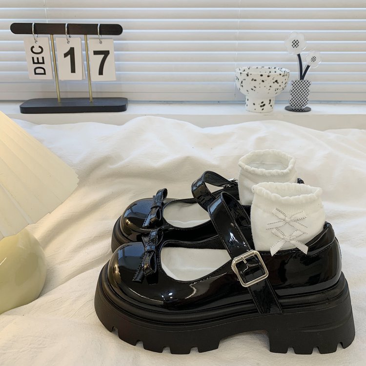 두꺼운 밑창 메리 제인 신발 여성 봄 2024 새로운 대학 스타일 얕은 입 싱글 레이어 신발 레트로 올 매치 스커트 작은 가죽 신발