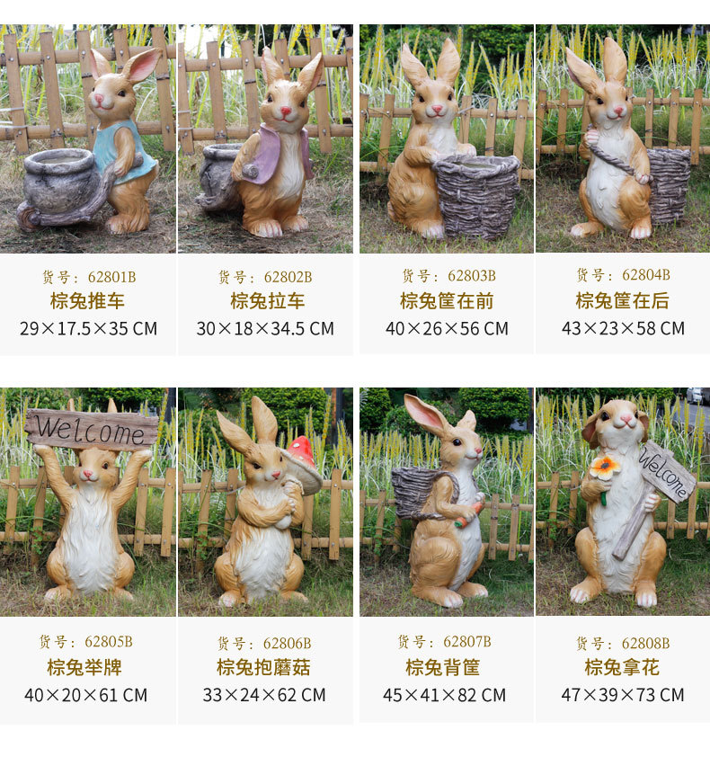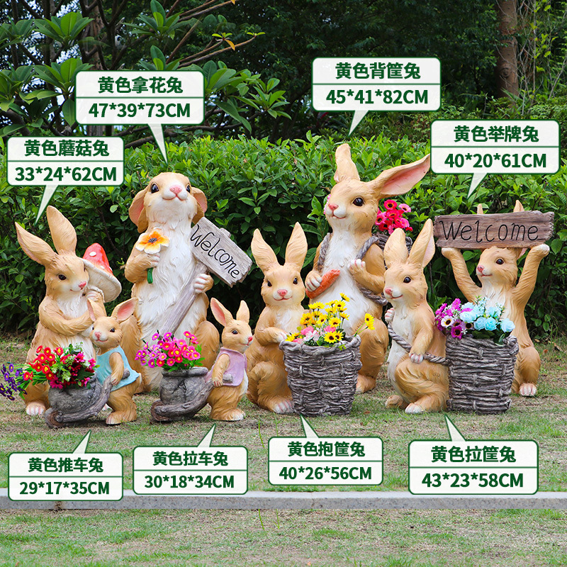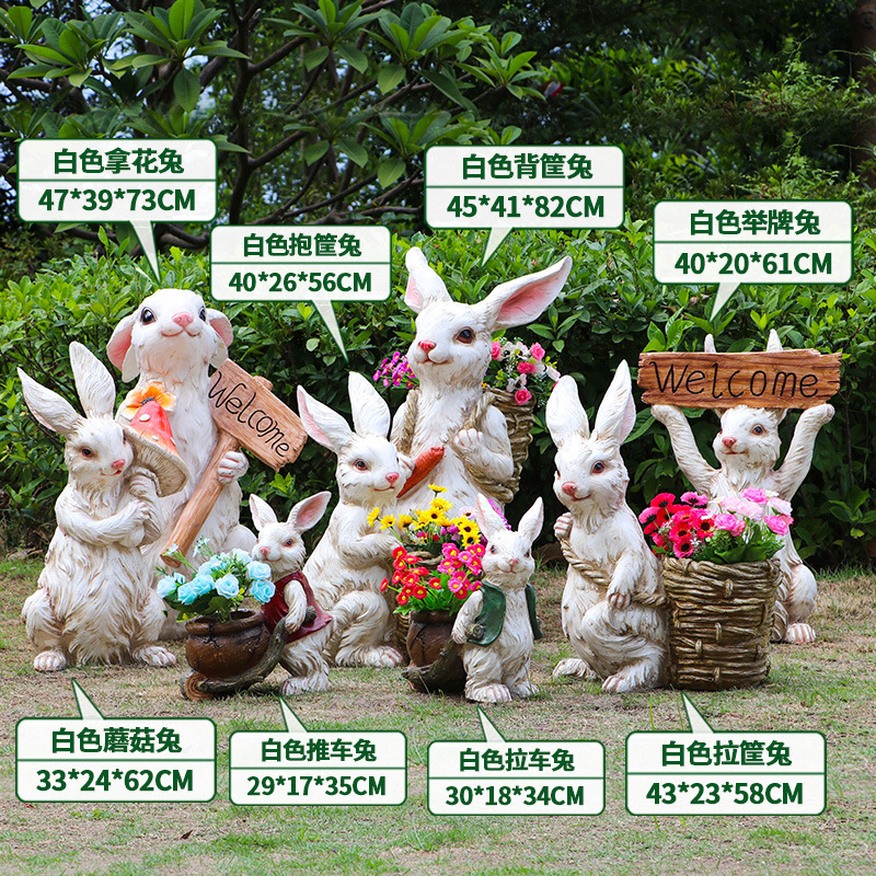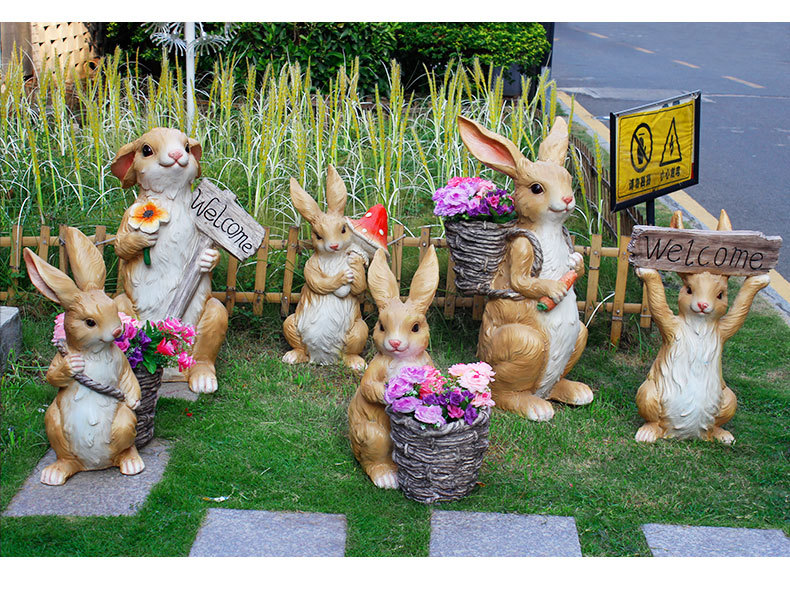 빌라 안뜰 정원 장식 복고풍 만화 토끼 장식 야외 시뮬레이션 동물 조각 정원 풍경 스케치스토어 가기