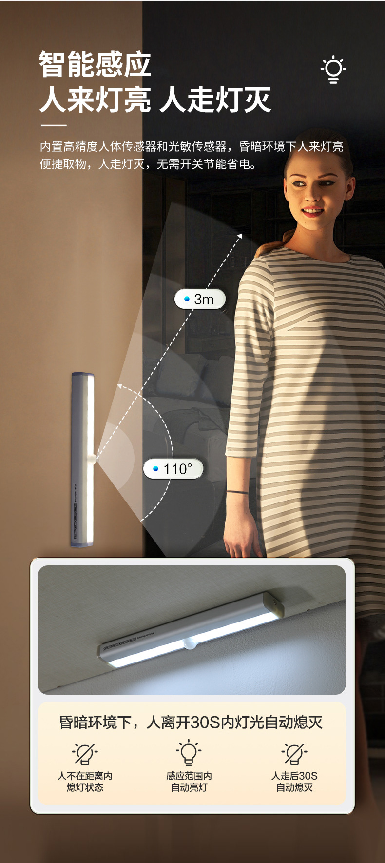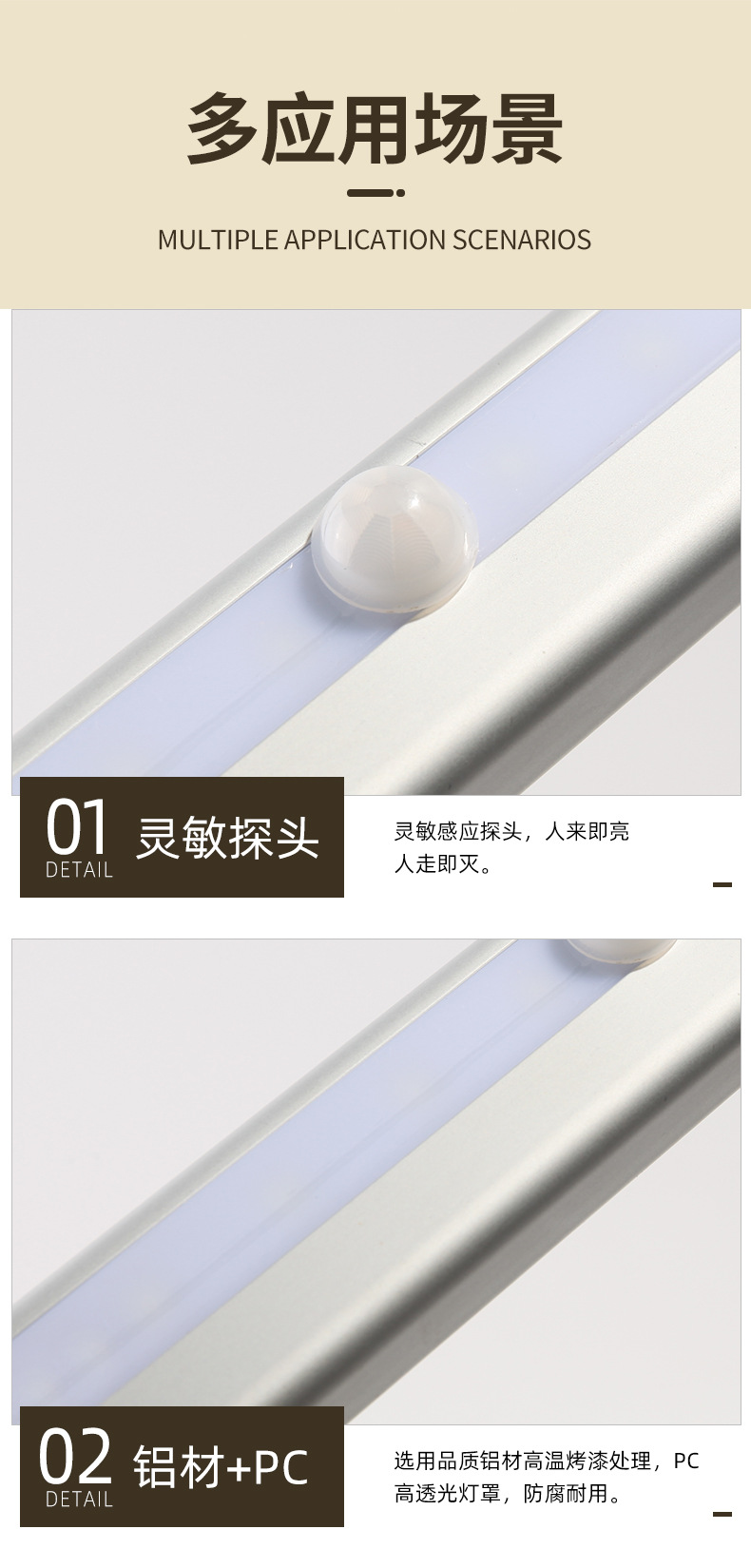 스팟 스마트 자기 충전식 LED 인체 센서 라이트 옷장 와인 캐비닛 통로 계단 라이트 센서 야간 조명