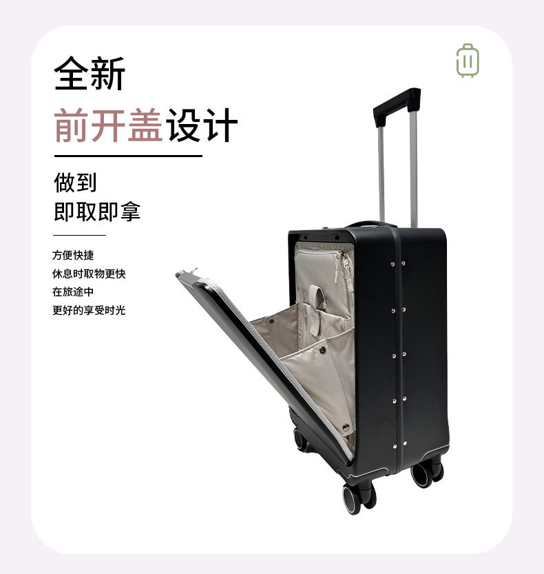 2024 새로운 국경 막대 수하물 케이스 여성의 대용량 프론트 오픈 뚜껑 트롤리 케이스 유니버설 휠 남성 여행 코드 박스