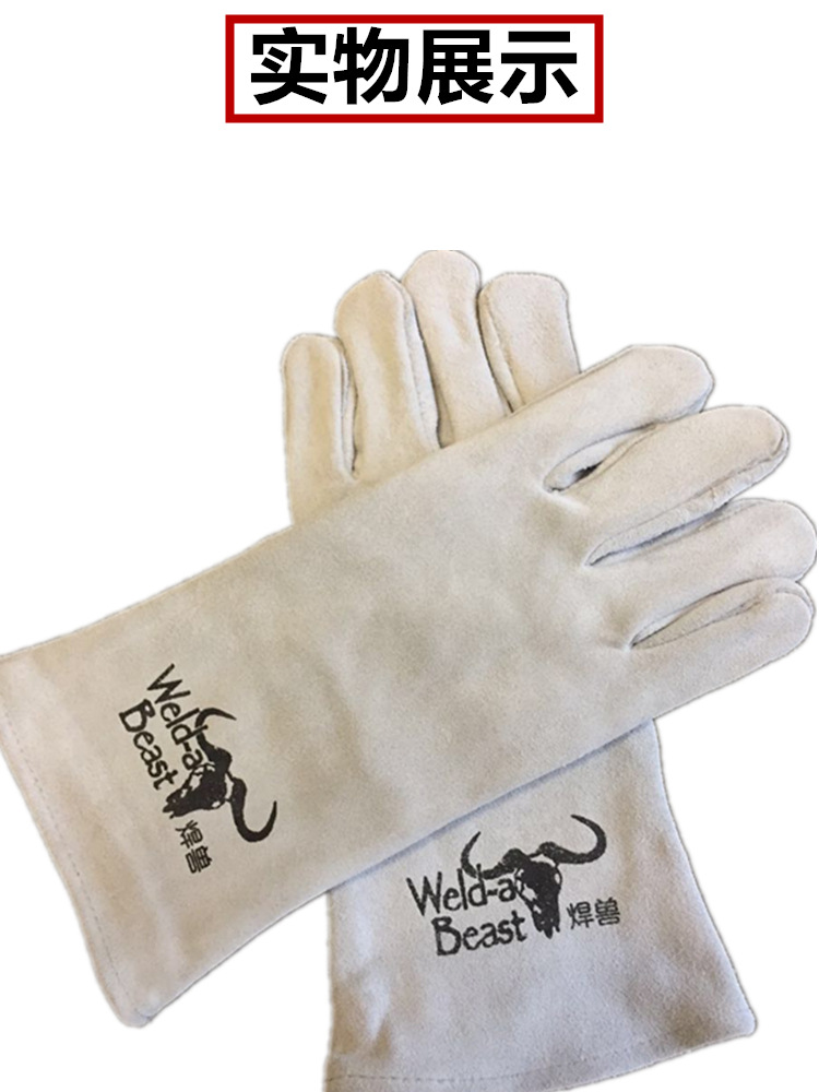 용접 짐승 전기 용접 장갑 용접 장갑 용접 단열 내마모성 소 가죽 고온 방지 부드러운 노동 장갑스토어 가기