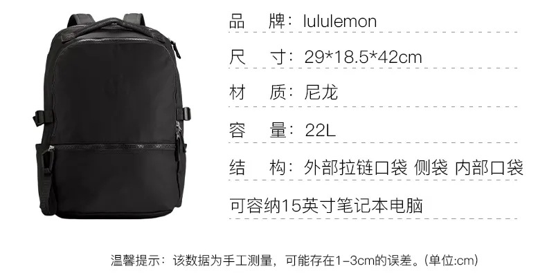 원래 lulu22L 대용량 스포츠 피트니스 요가 배낭 학생 컴퓨터 가방 여행 등반 방수 배낭스토어 가기