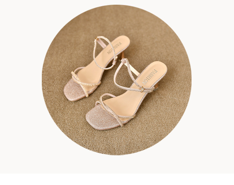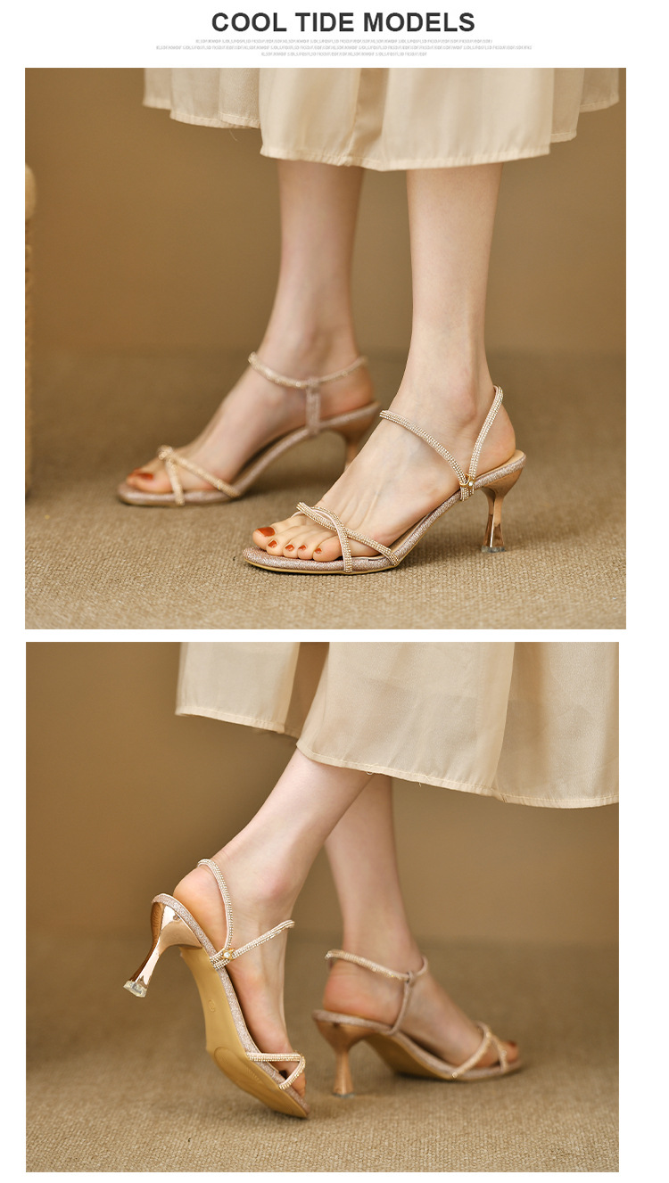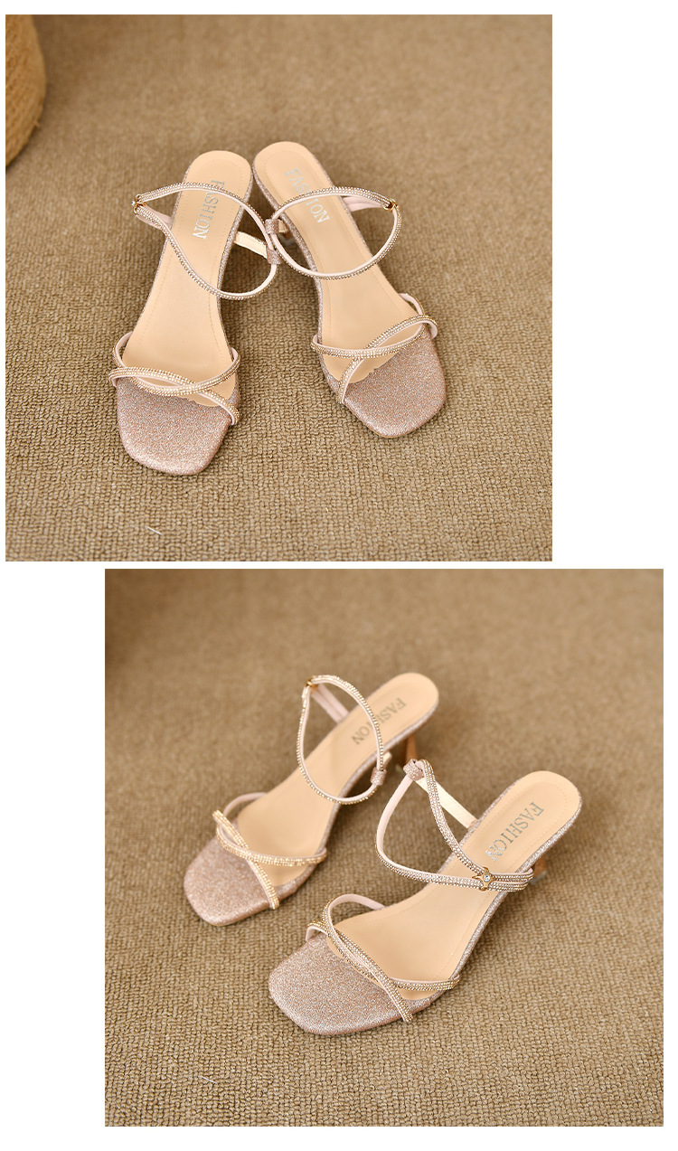 라인스톤 샌들 여성 2024 년 새 여름 패션 페어리 스타일 오픈 발가락 하이힐 샌들 스퀘어 발가락 얇은 뒤꿈치 여성용 신발스토어 가기