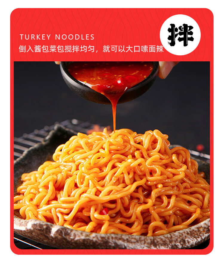 터키 국수 굵은 국수 케이크 매운 큰 부분 달콤하고 매운 고급 국수 한국 인스턴트 국수 터키 혼합 국수 전체 사례 즉석 국수스토어 가기