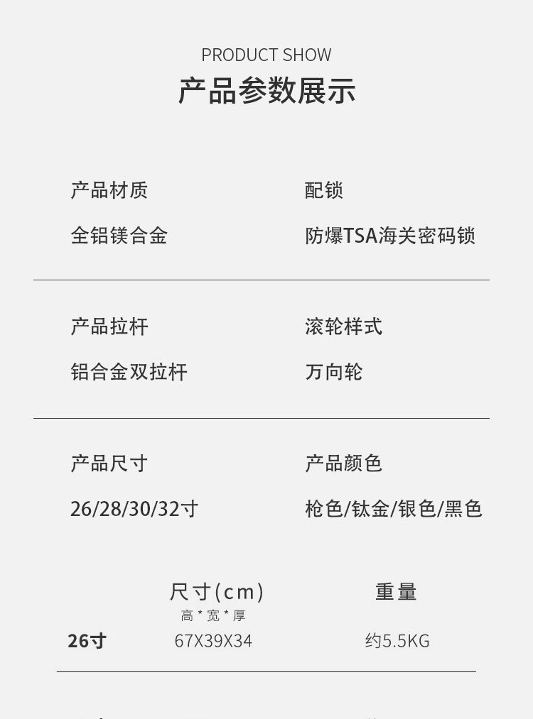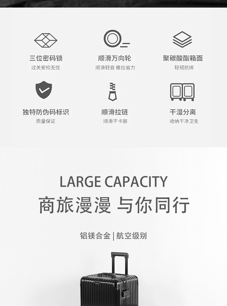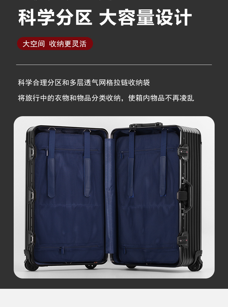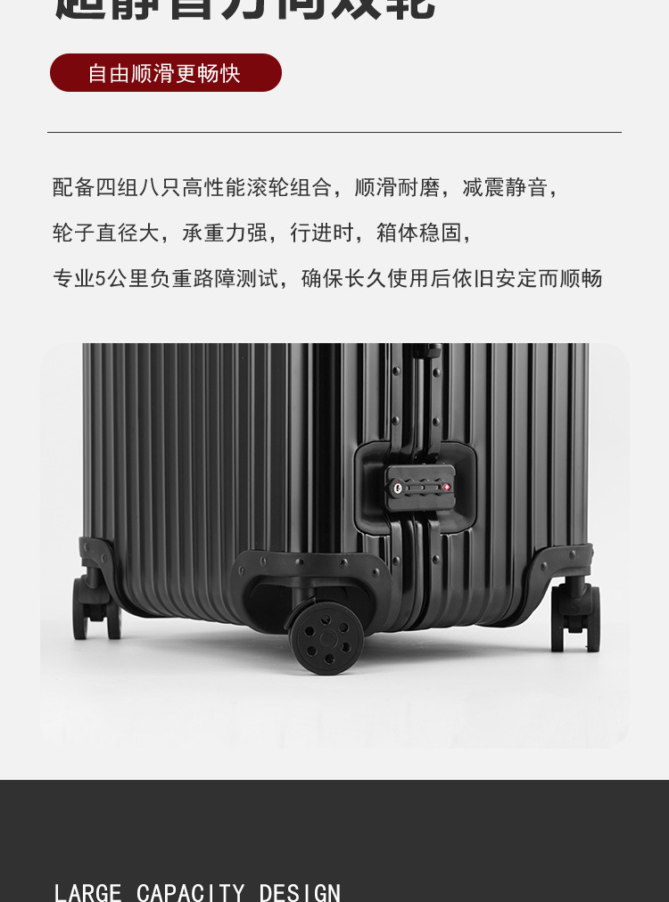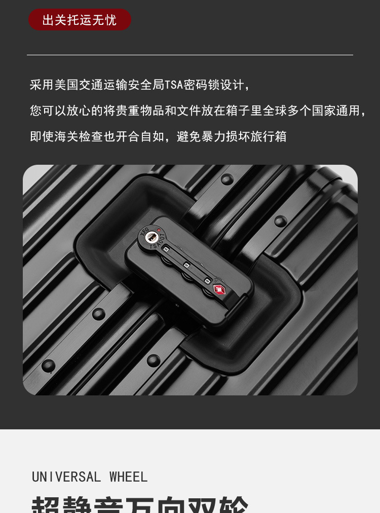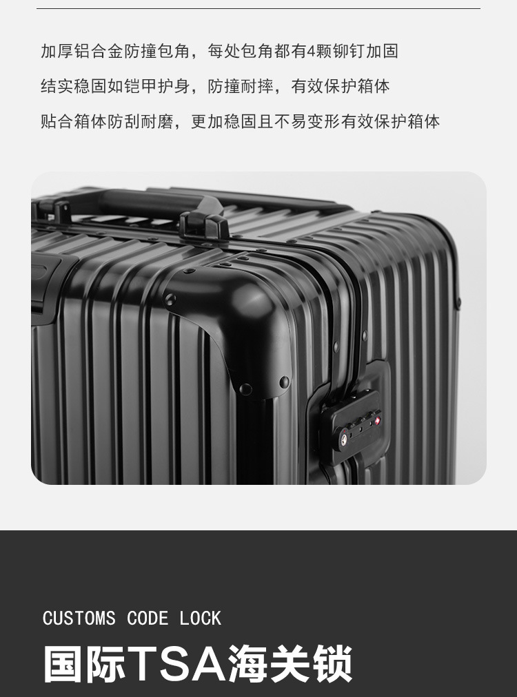 공장 직접 알루미늄 마그네슘 합금 트롤리 케이스 유니버설 휠 암호 잠금 트롤리 케이스 탑승 케이스 도매 머리카락 세대