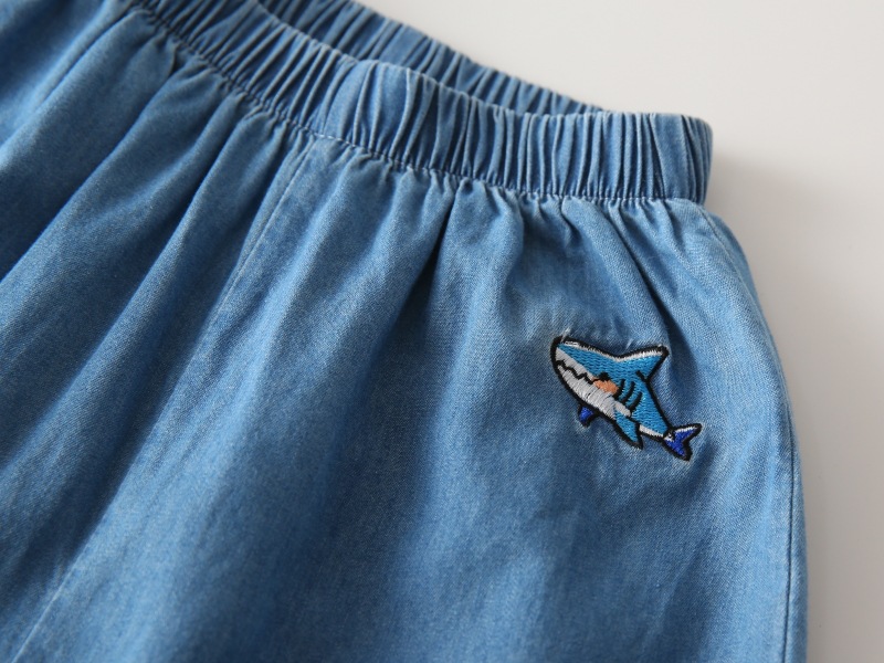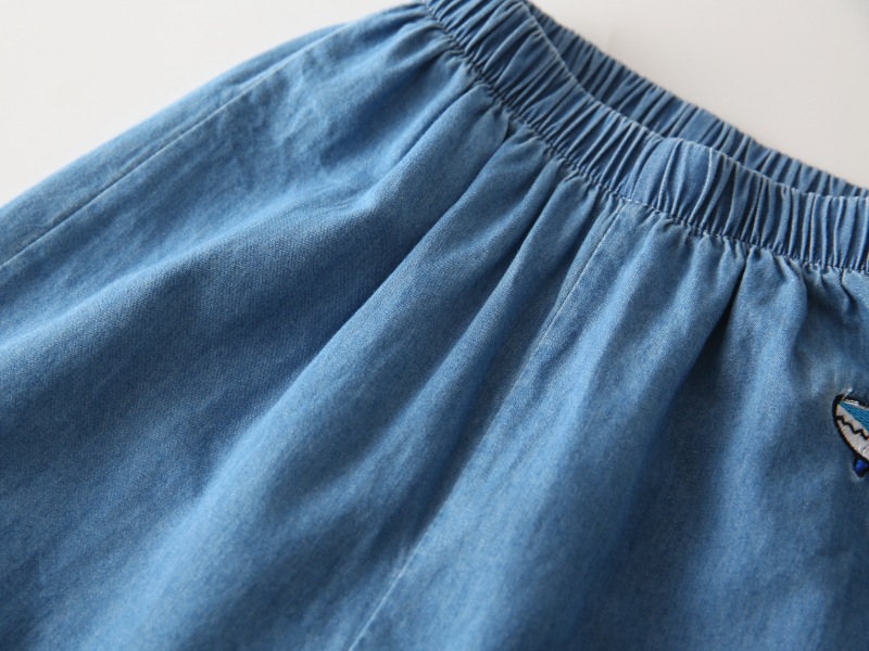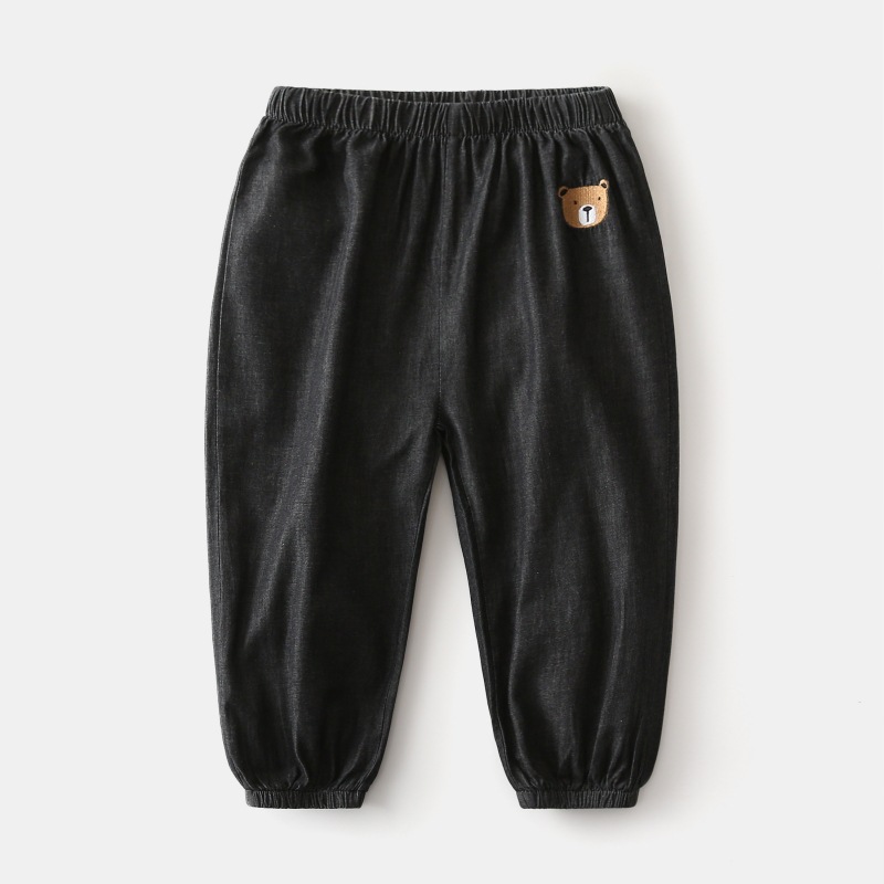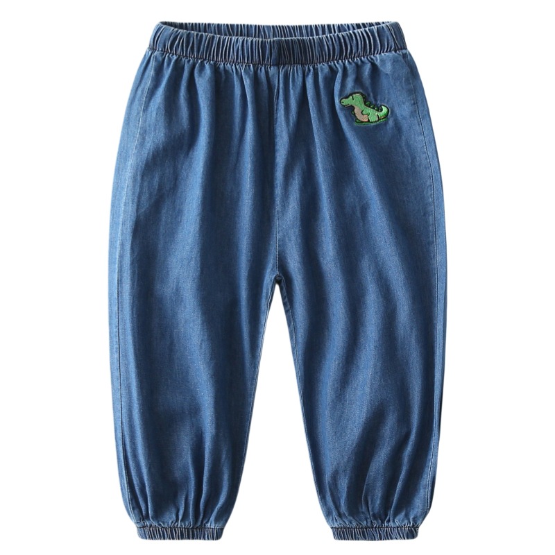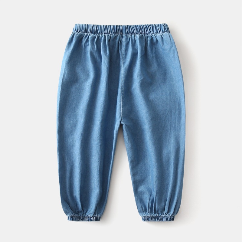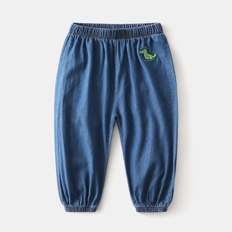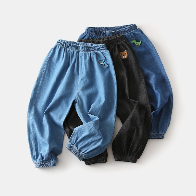 어린이 여름 모기 방지 바지 2024 새로운 소년 얇은 데님 느슨한 바지 아기 패션 수 놓은 넓은 다리 바지스토어 가기