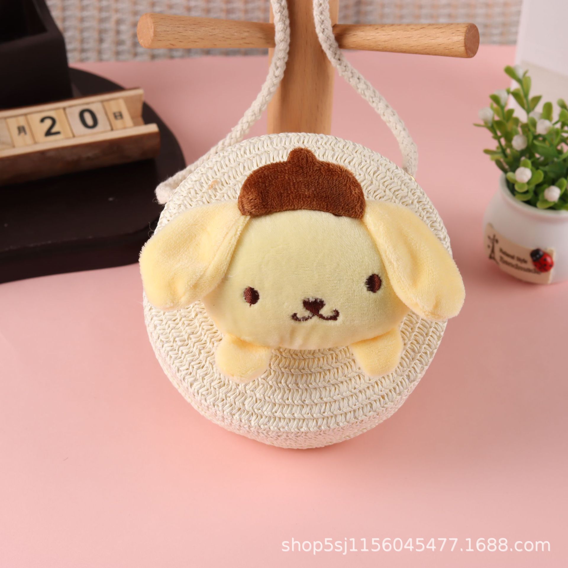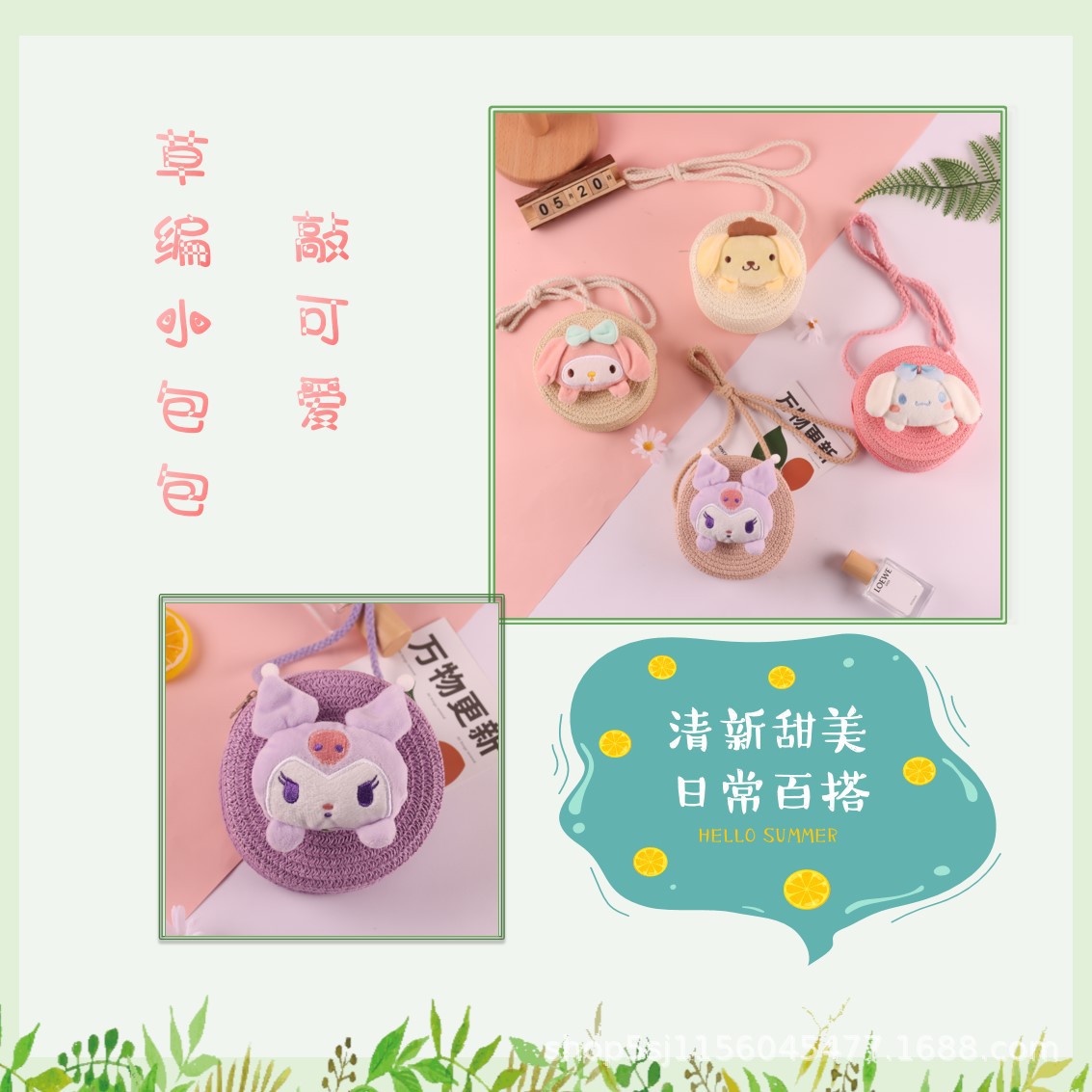 새로운 어린이 밀짚 가방 귀여운 만화 Merleti 경치 명소 여행 해변 어린이 동전 지갑 크로스 바디 백