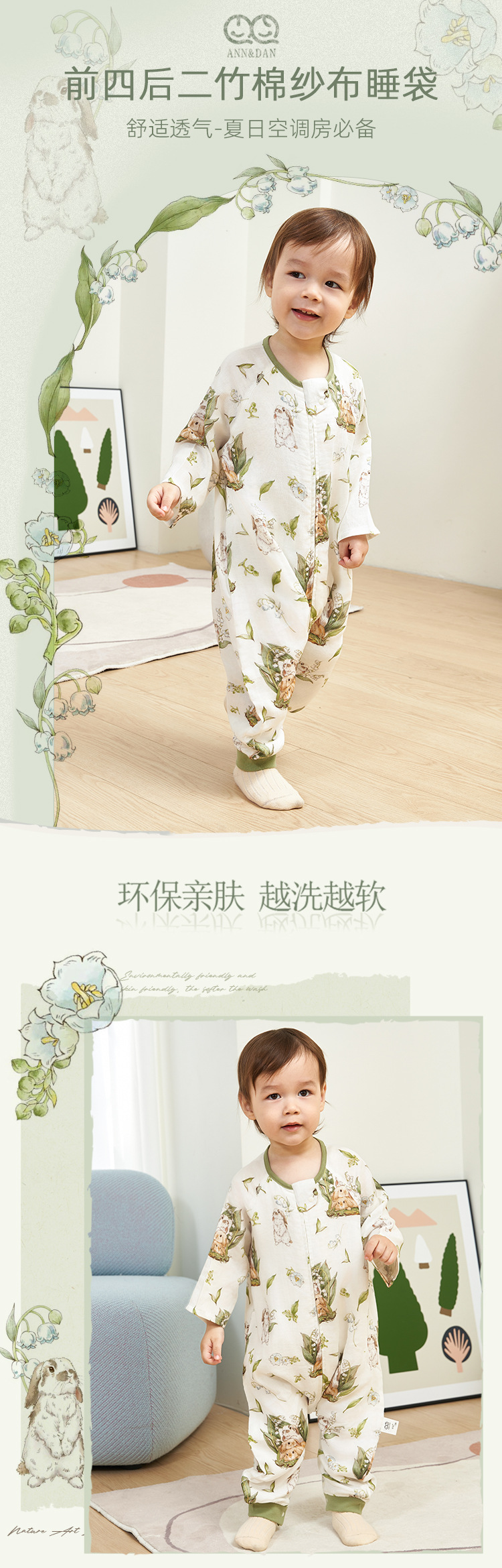 안단 어린이 슬리핑 백 봄과 여름 에어컨이 설치된 방 앞 4 개와 후면 2 대나무면 거즈 스플릿 레그 슬리핑 백 안단 슬리핑 백스토어 가기