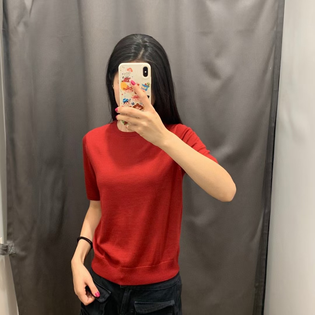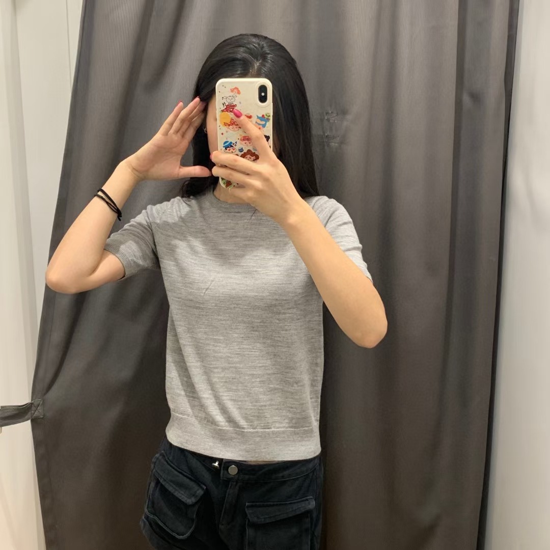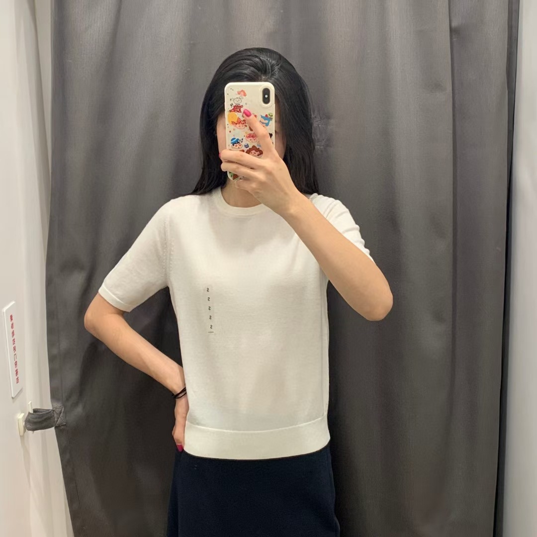 일본 싱글 여성복 2023 가을 최악의 메리노 크루 넥 반소매 니트 스웨터 에어컨 셔츠 탑 461035