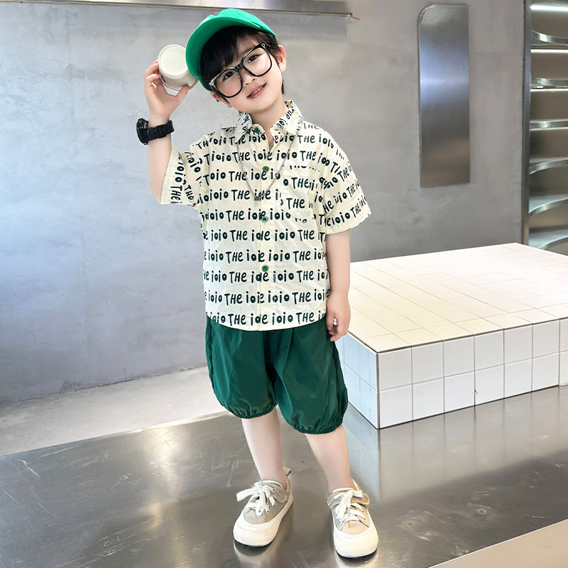 어린이 여름 반팔 셔츠 세트 2024 여름 새로운 중소 소년 얇은 2 피스 대외 무역 아동복스토어 가기