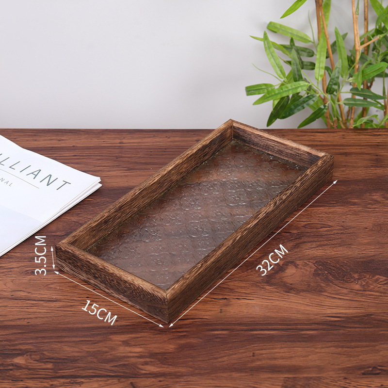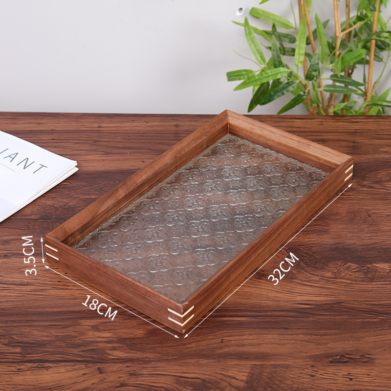 재고 단단한 나무 베고니아 꽃 유리 트레이 차 트레이 직사각형 가정용 디스펜서 티 컵 물 컵 유리 트레이 진자스토어 가기
