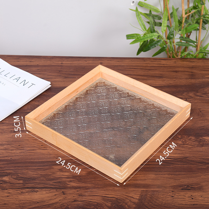 재고 단단한 나무 베고니아 꽃 유리 트레이 차 트레이 직사각형 가정용 디스펜서 티 컵 물 컵 유리 트레이 진자