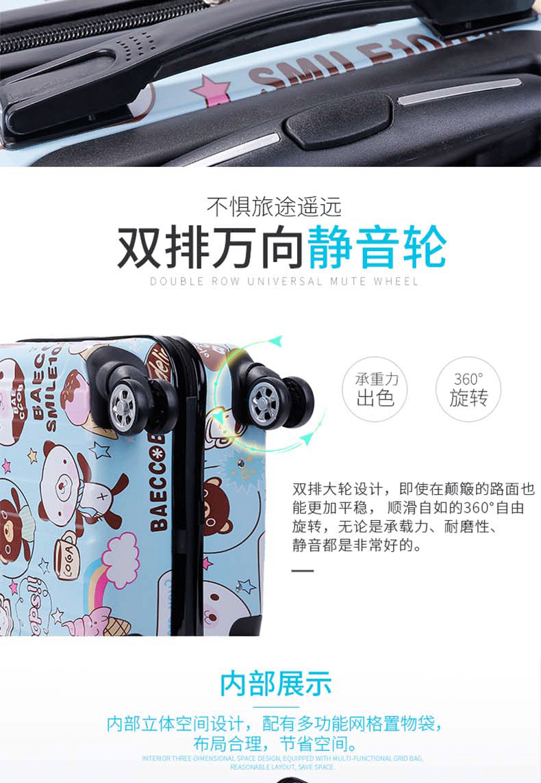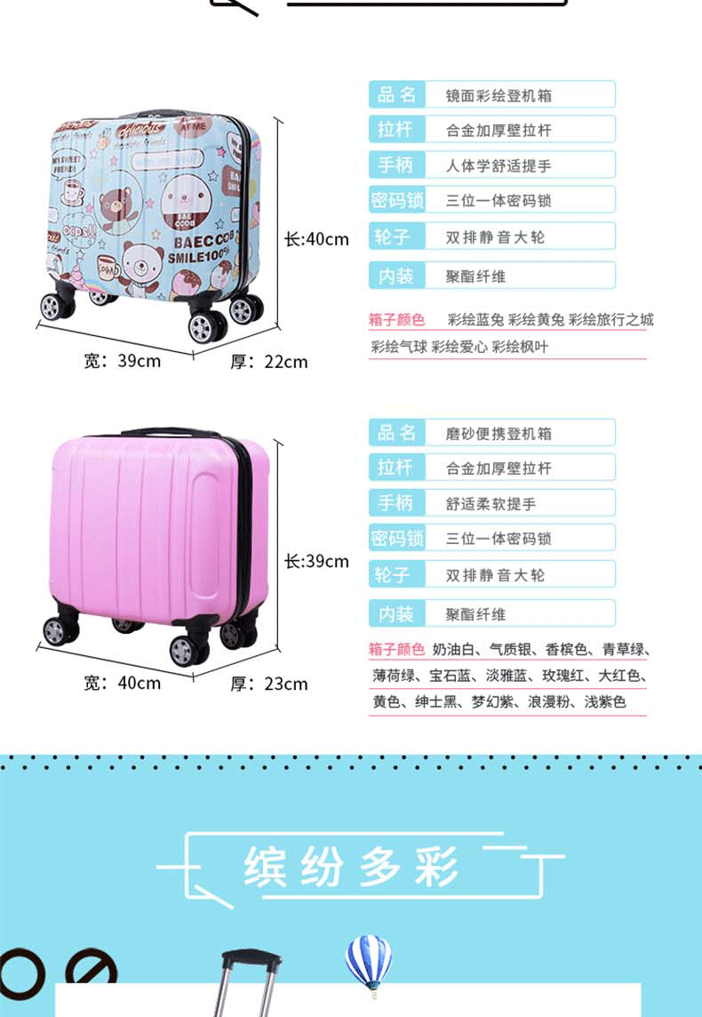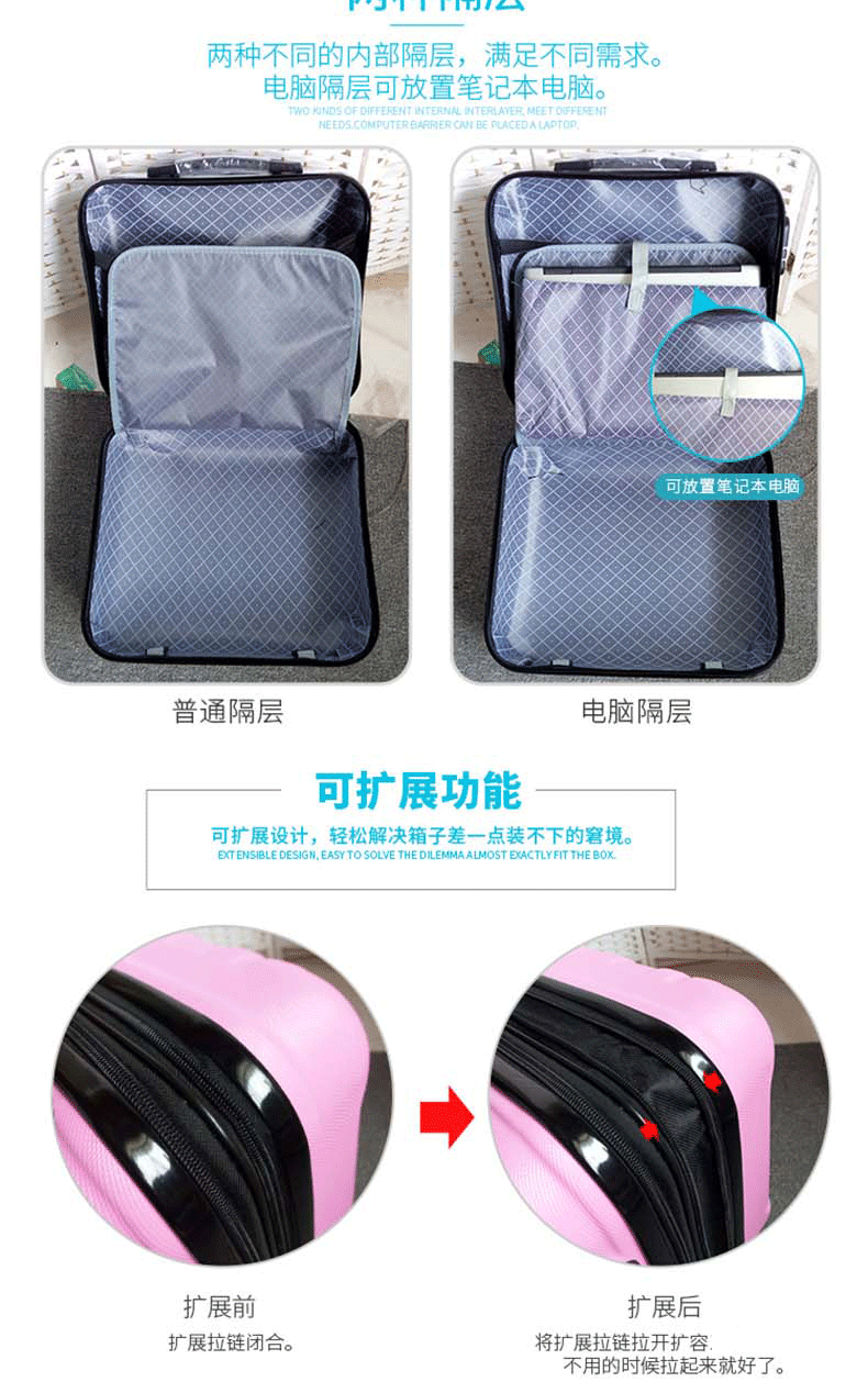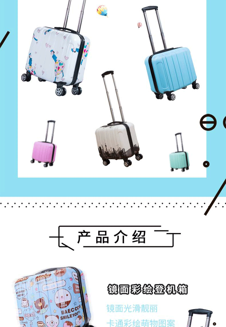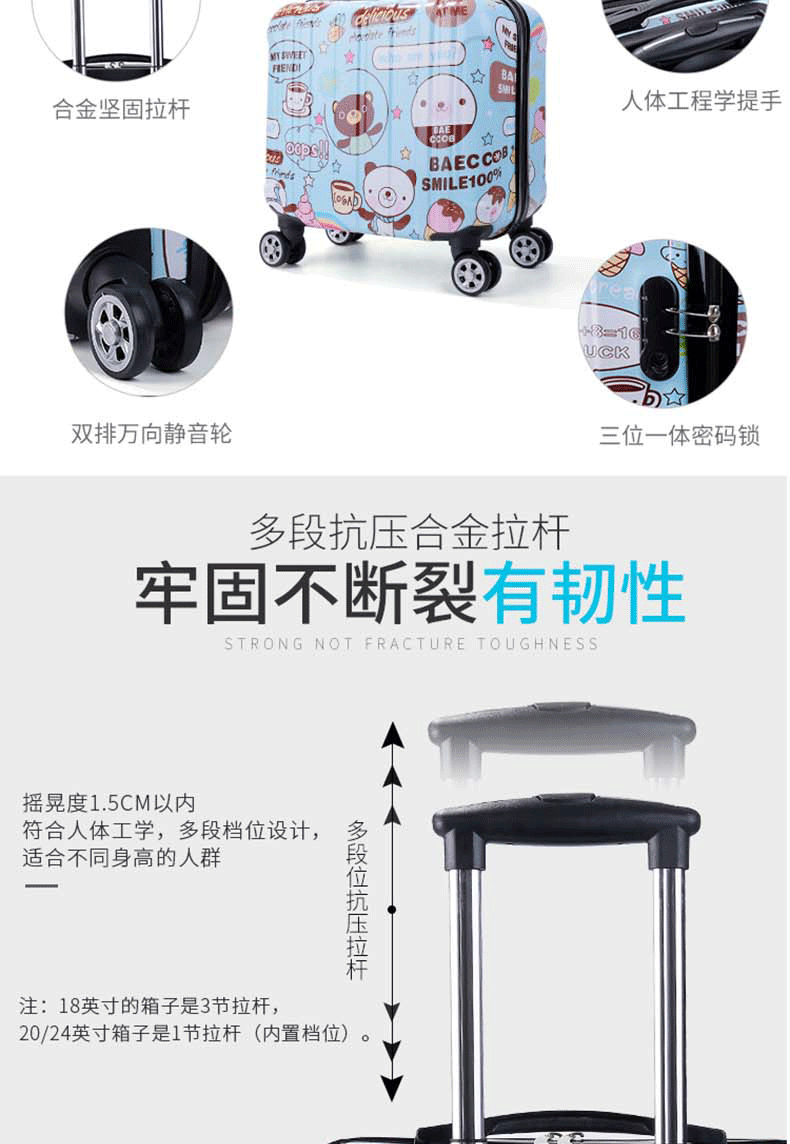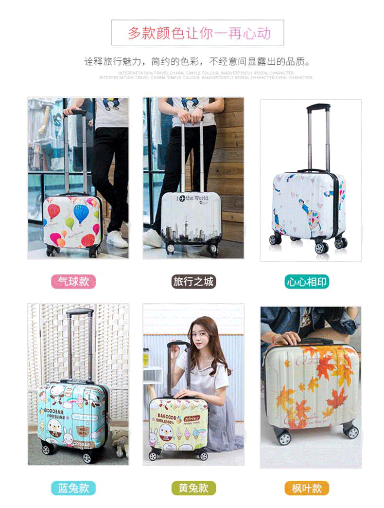 专注箱包11年!我们拥有丰富的箱包制造经验,产品热销国内、香港、东南亚、美国、意大利、荷兰、英国、迪拜、印度、韩国、日本、菲律宾等地,凭借优良的品质与服务,赢得各界朋友的信赖与肯定,享誉海内外。支持大量批发、来样定制、OEM贴牌定制,一件代发, 如需定制各种图案、logo、尺寸、颜色、配件、里布的拉杆箱,欢迎与我们联系洽谈,期待您的到来。
