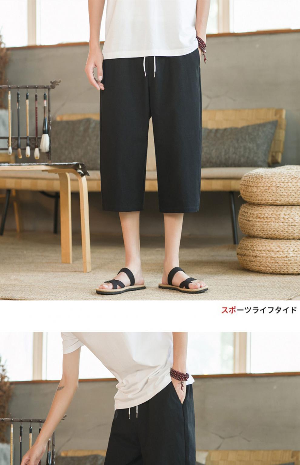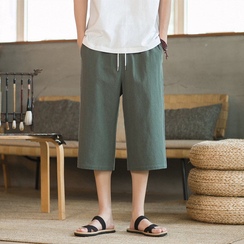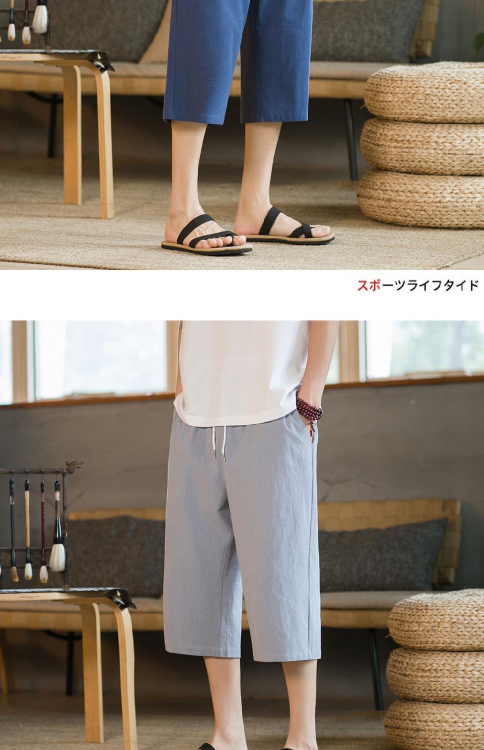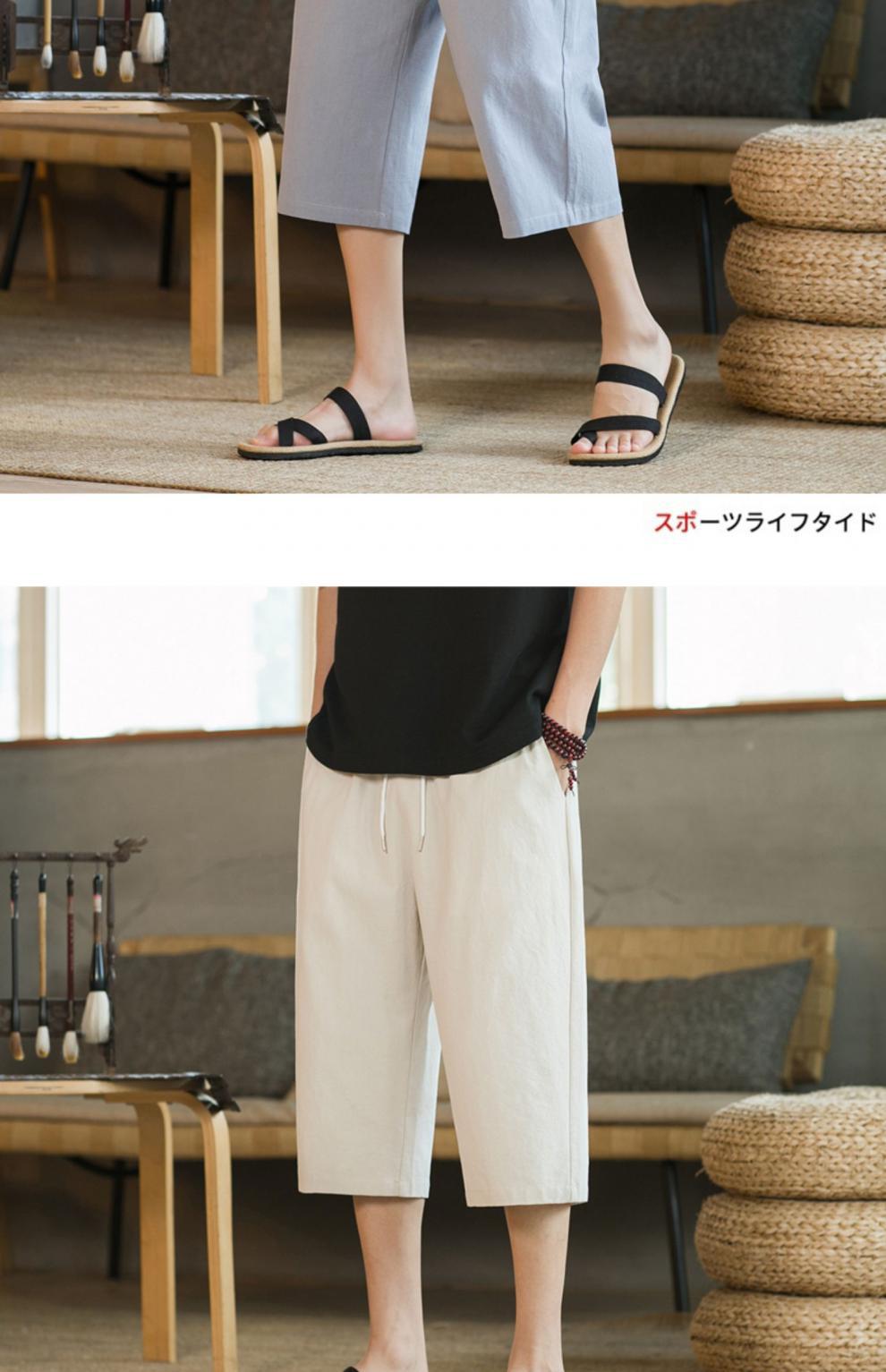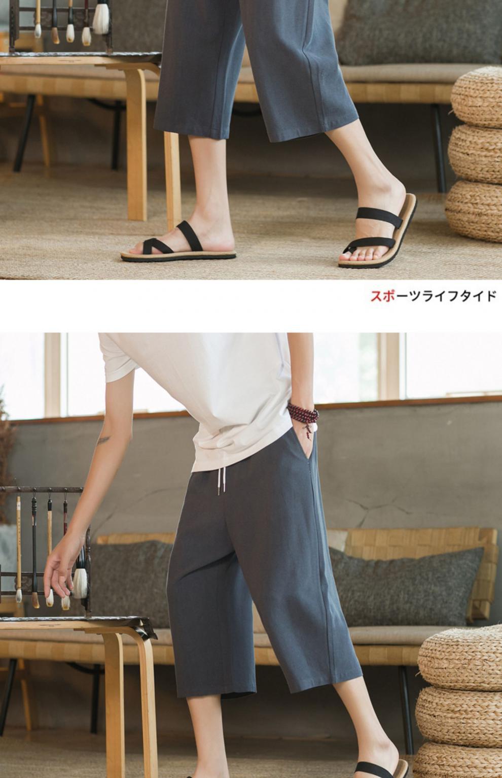 여름 캐주얼 바지 남자 올매치 코튼 및 리넨 루즈 리넨 바지 한국 유행 자른 바지 8 점 스트레이트 K918스토어 가기