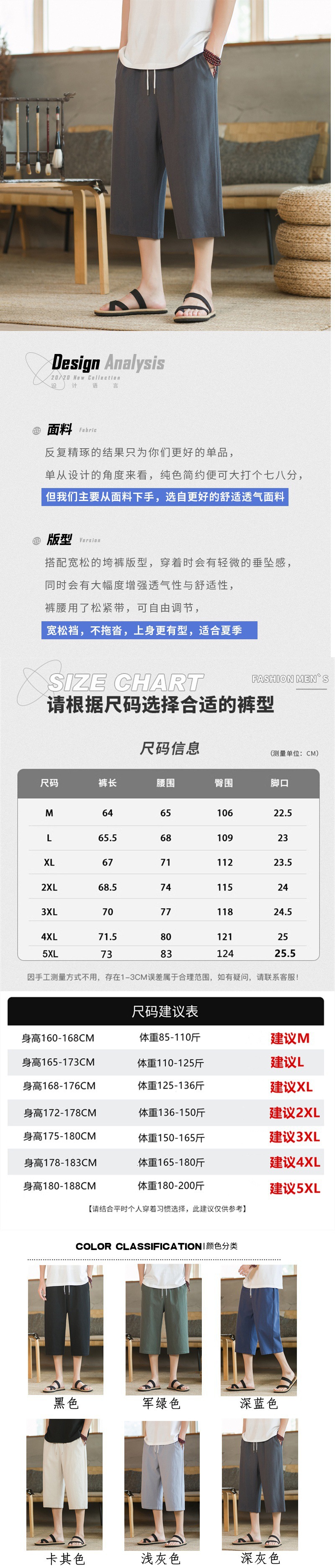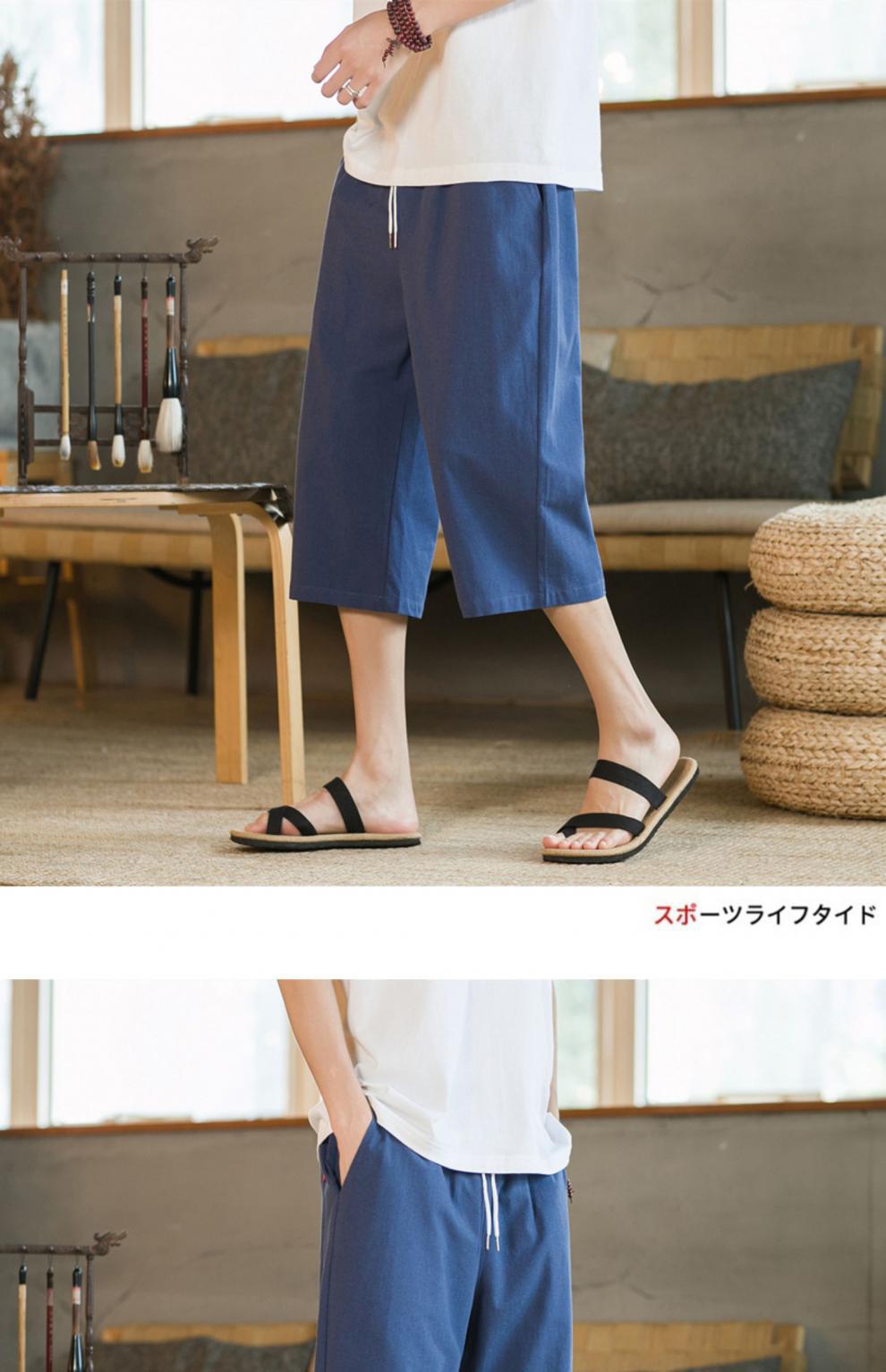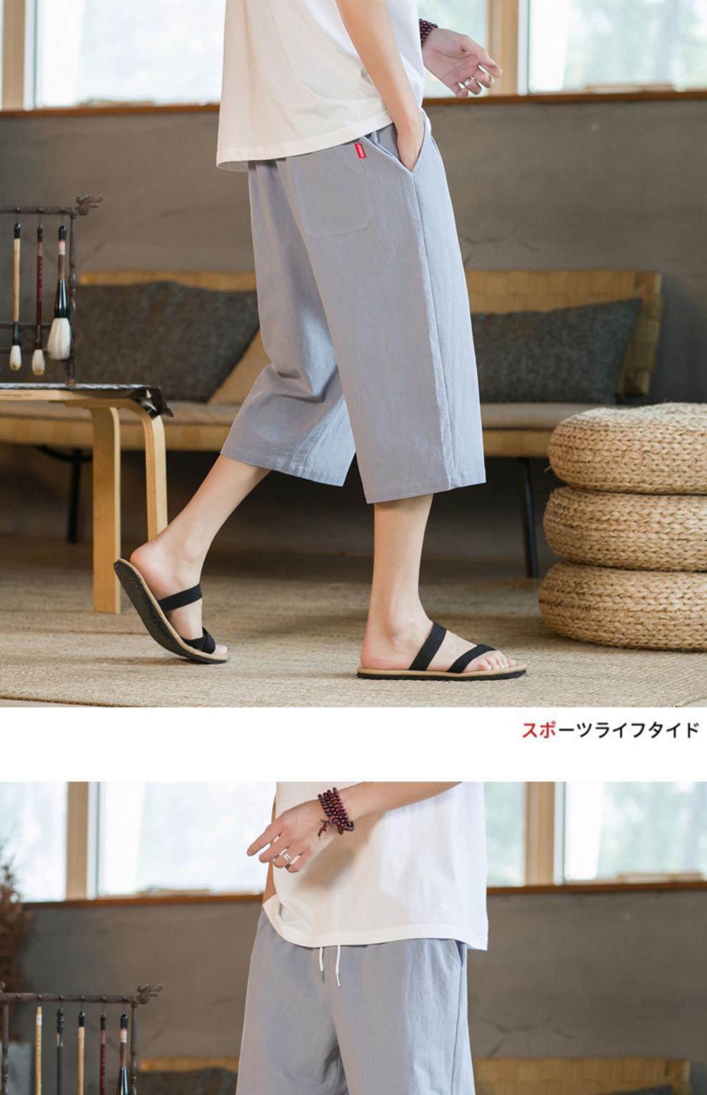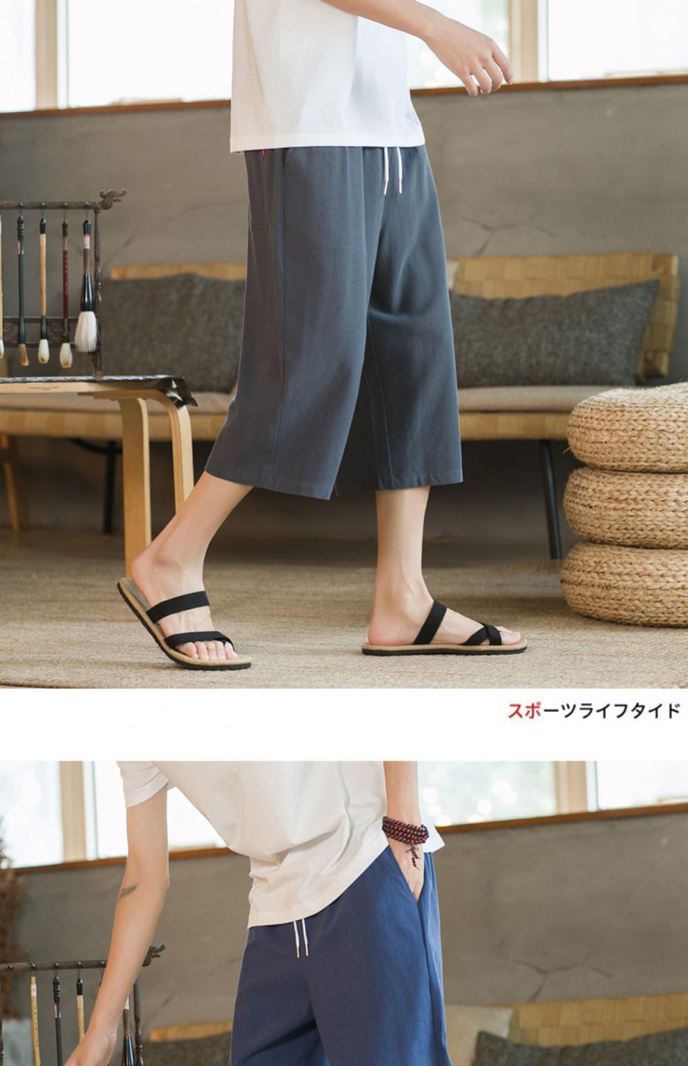 여름 캐주얼 바지 남자 올매치 코튼 및 리넨 루즈 리넨 바지 한국 유행 자른 바지 8 점 스트레이트 K918스토어 가기