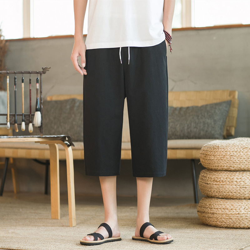여름 캐주얼 바지 남자 올매치 코튼 및 리넨 루즈 리넨 바지 한국 유행 자른 바지 8 점 스트레이트 K918