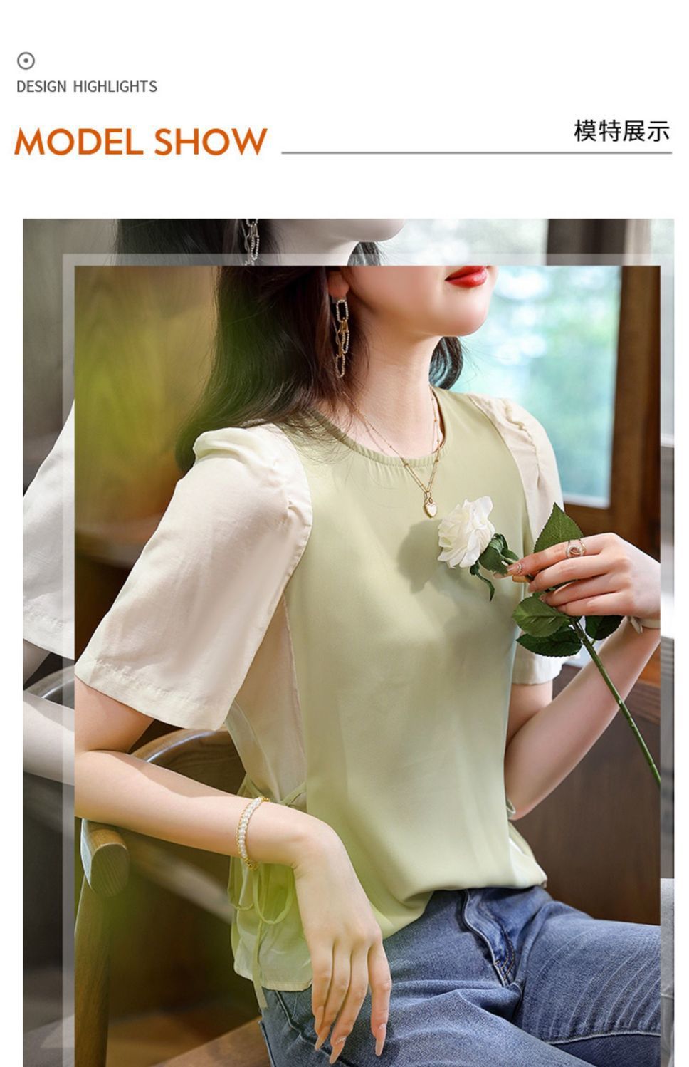 서양식 작은 셔츠 나이를 줄이는 반소매 쉬폰 셔츠 여성 여름 2024 새로운 스타일 우아한 타이트 허리 슬리밍 여름 여성 탑