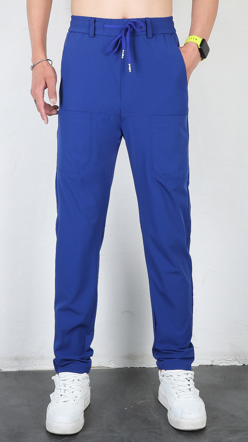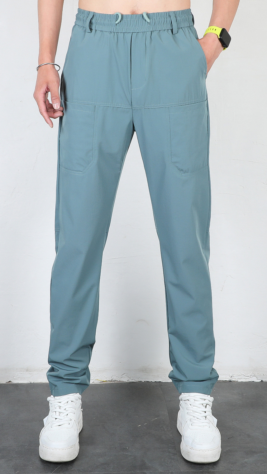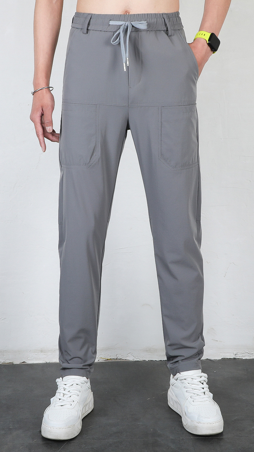 여름 아이스 실크 바느질 6 포켓 솔리드 컬러 방수 높은 탄성 남성 캐주얼 바지 TikTok 빠른 손 인터넷 인기있는 캐주얼 스트레이트 바지스토어 가기