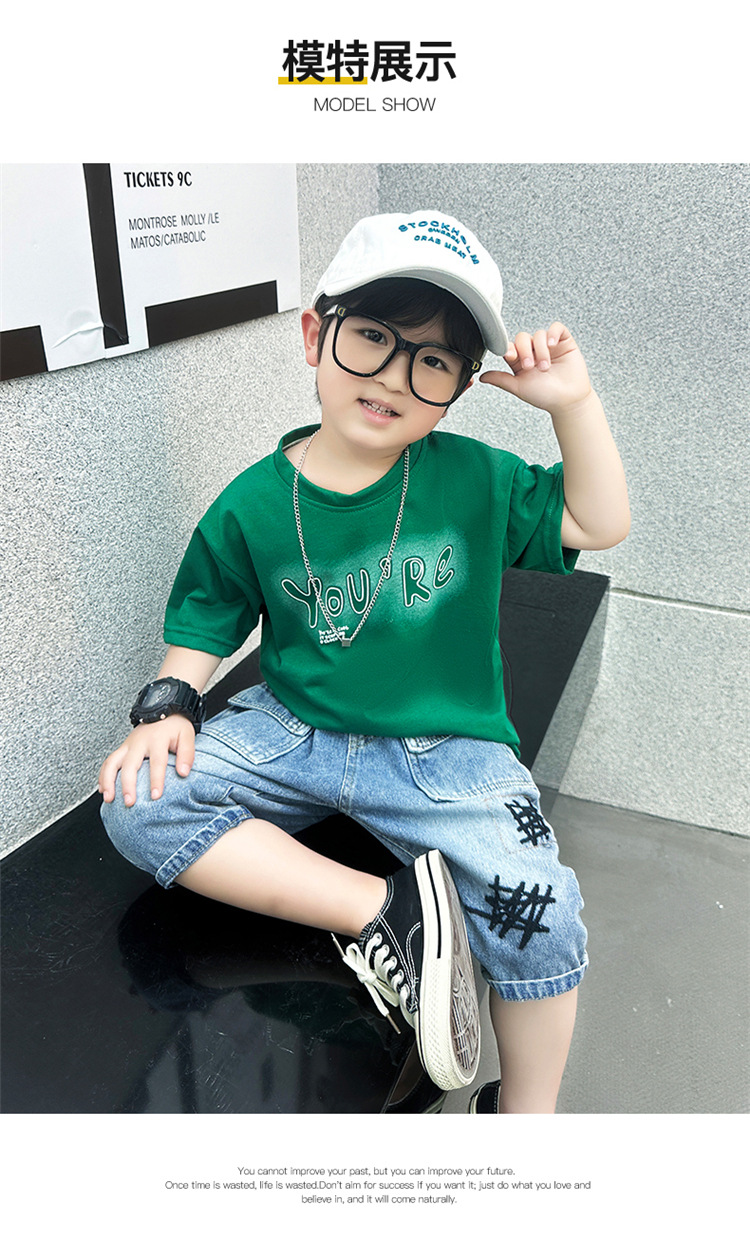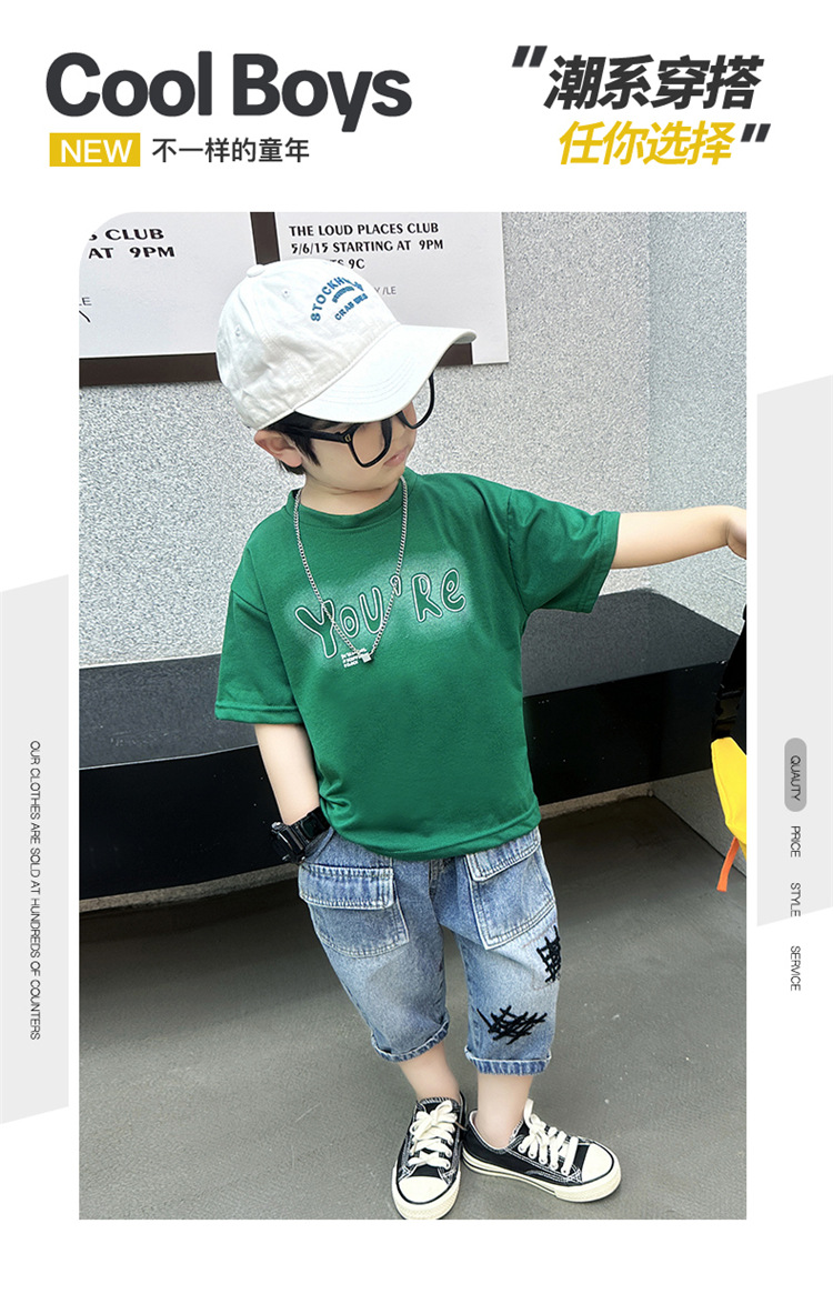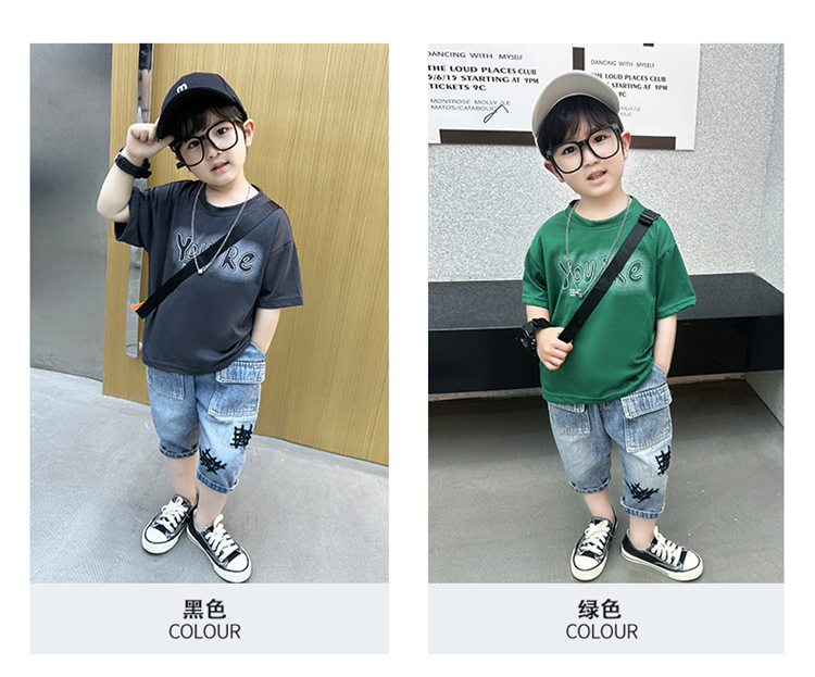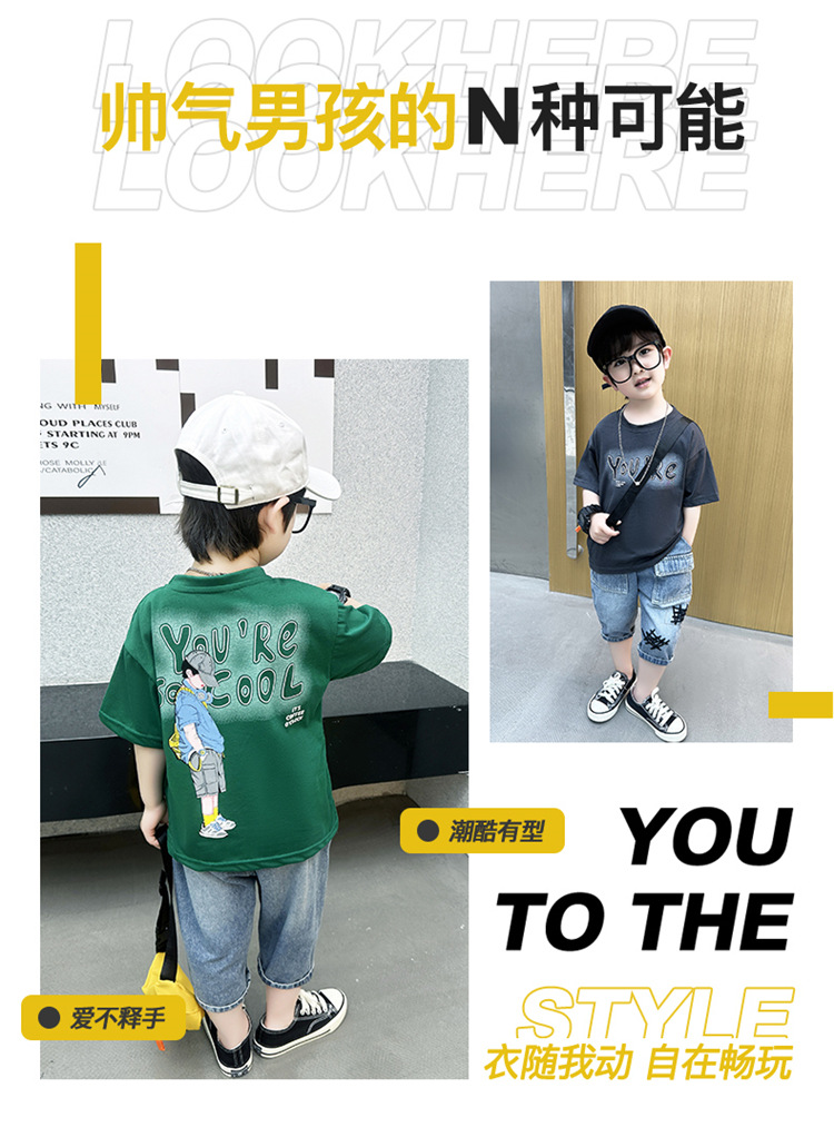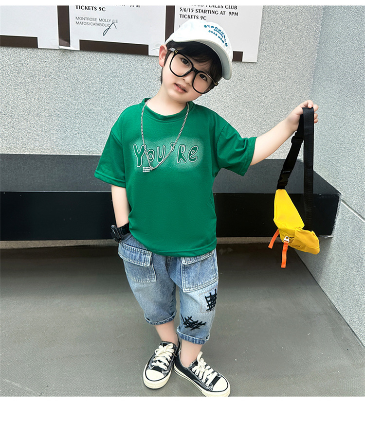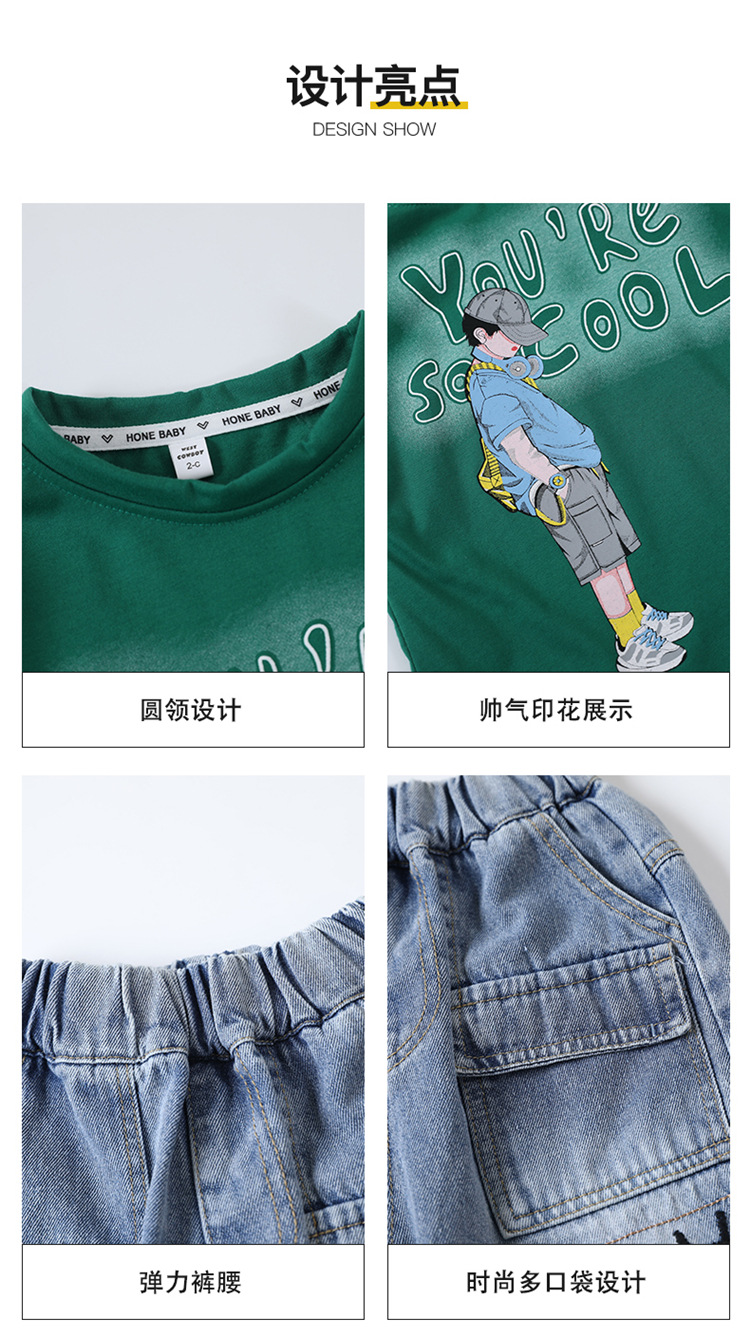 어린이 반팔 세트 2024 여름 새로운 한국 스타일 잘 생긴 남자 아기 인터넷 인기있는 유행 투피스 대외 무역 아동복스토어 가기