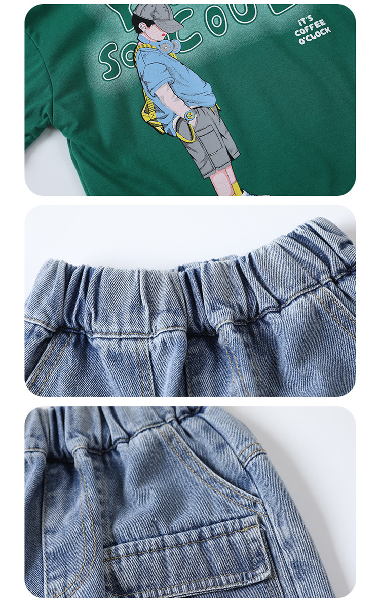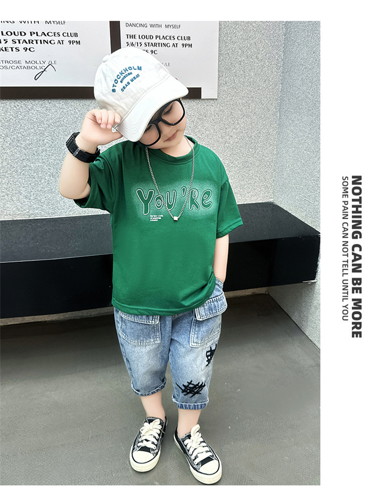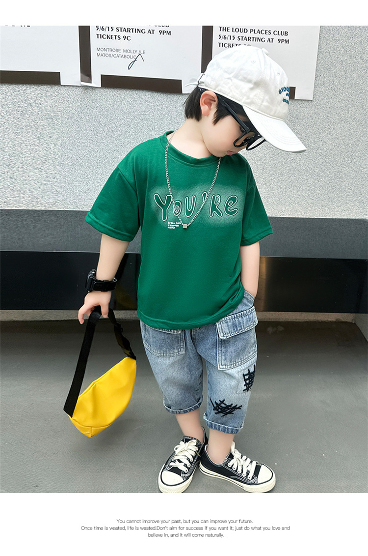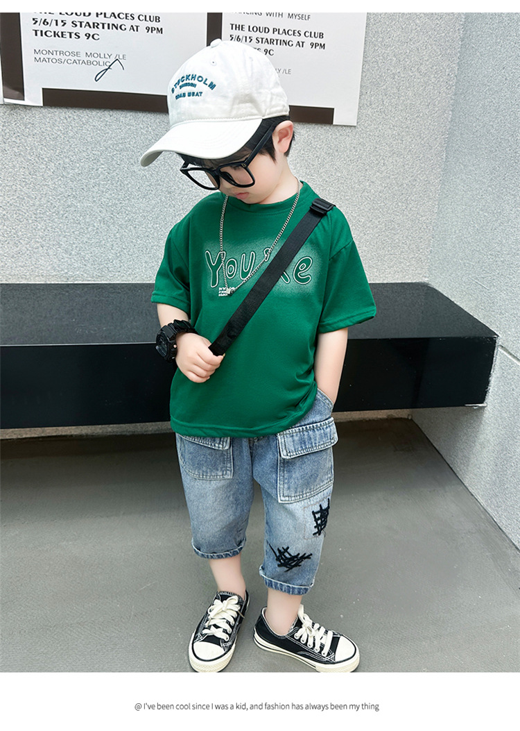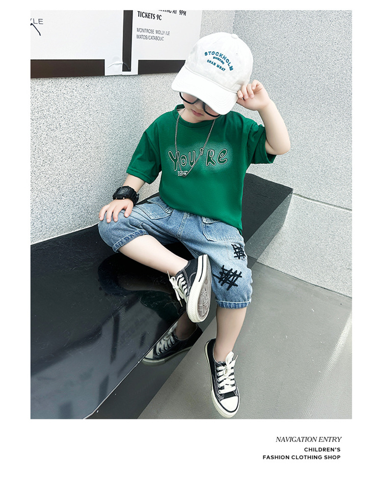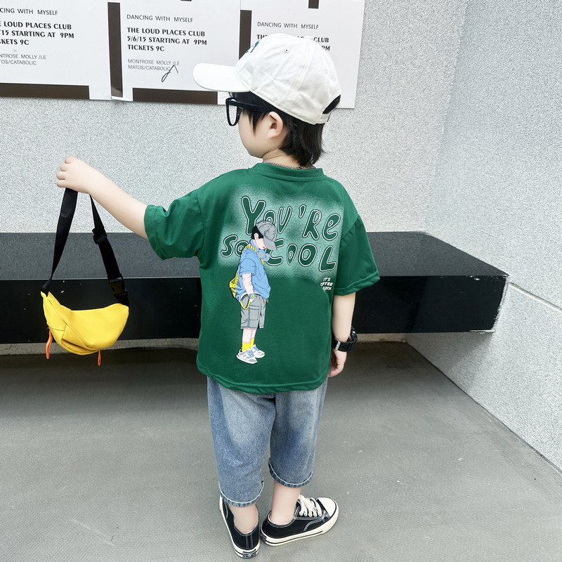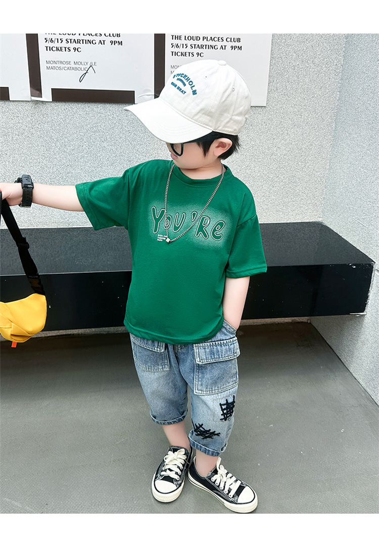 어린이 반팔 세트 2024 여름 새로운 한국 스타일 잘 생긴 남자 아기 인터넷 인기있는 유행 투피스 대외 무역 아동복스토어 가기