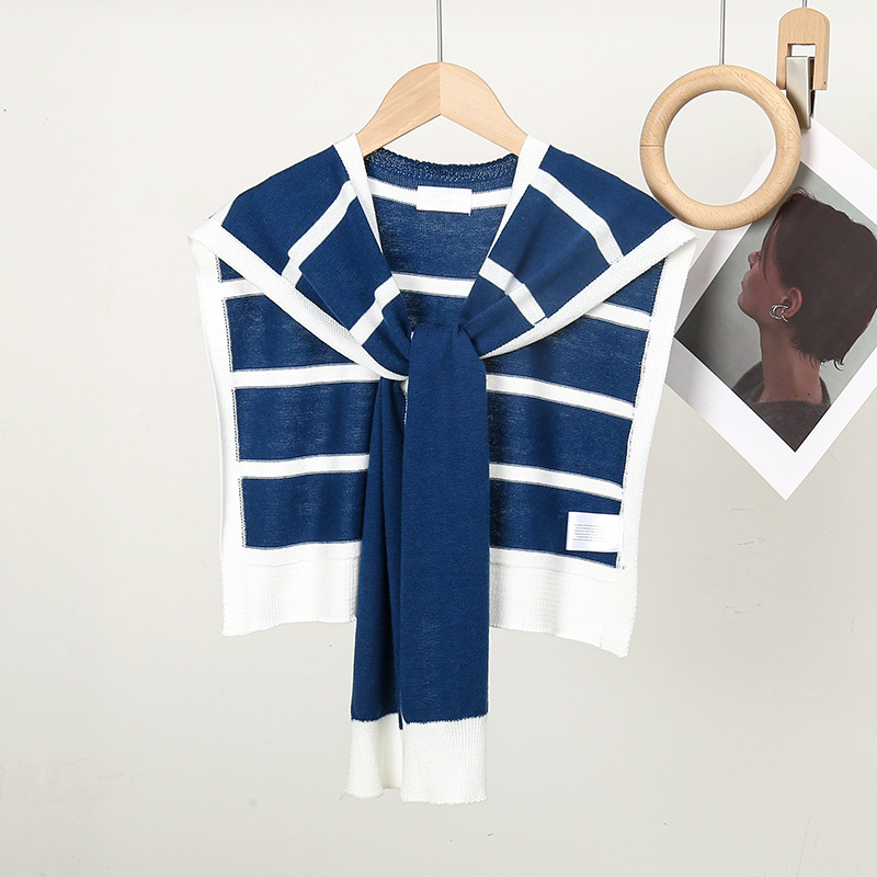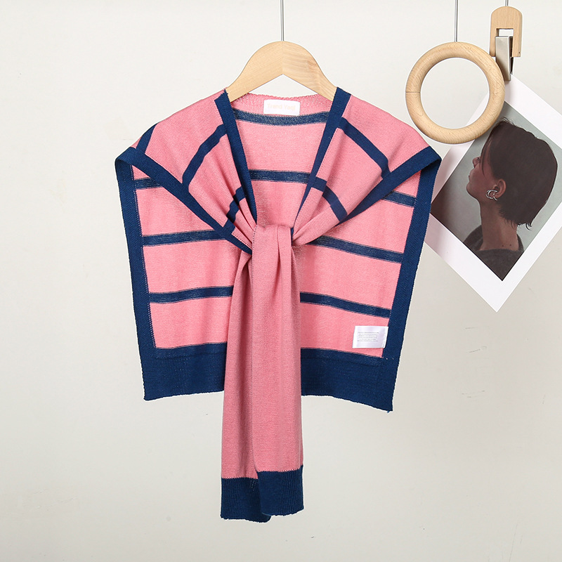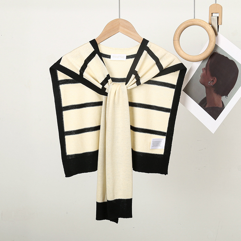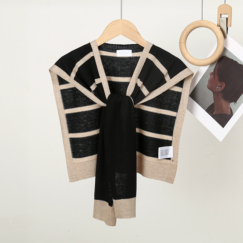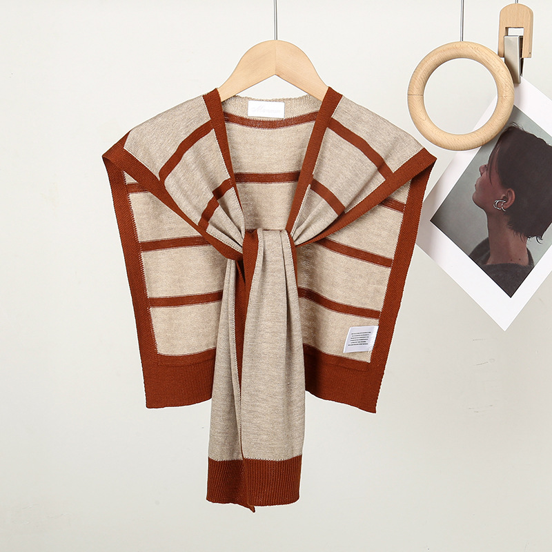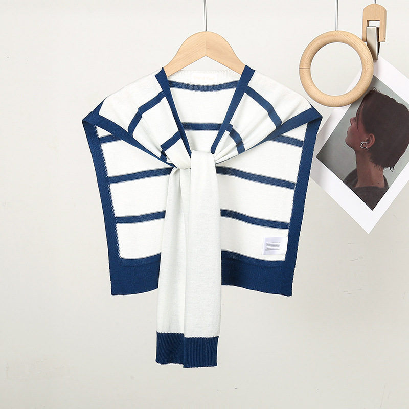 한국 스타일 여름 니트 줄무늬 양모 가짜 칼라 양모 목도리 외부 착용 장식 에어컨 룸 매듭 목도리 착용 여성스토어 가기