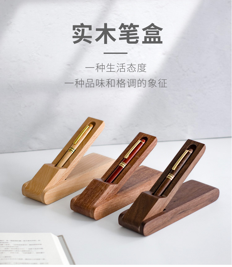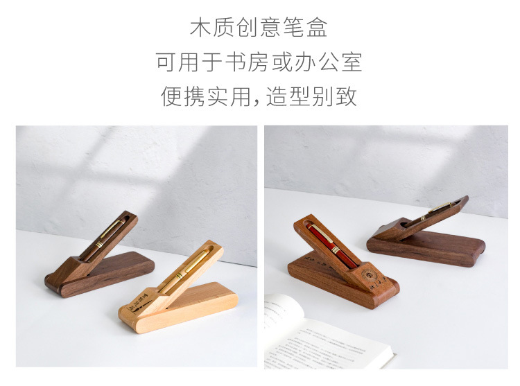 단단한 나무 연필 케이스 창조적 인 선물 조각 로고 간판 펜 공 펜 저장 상자 사무실 문구 세트스토어 가기