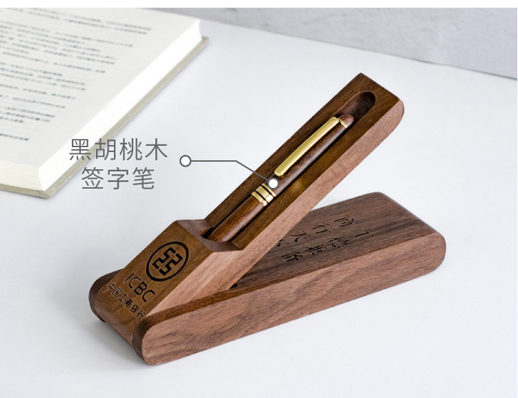 단단한 나무 연필 케이스 창조적 인 선물 조각 로고 간판 펜 공 펜 저장 상자 사무실 문구 세트