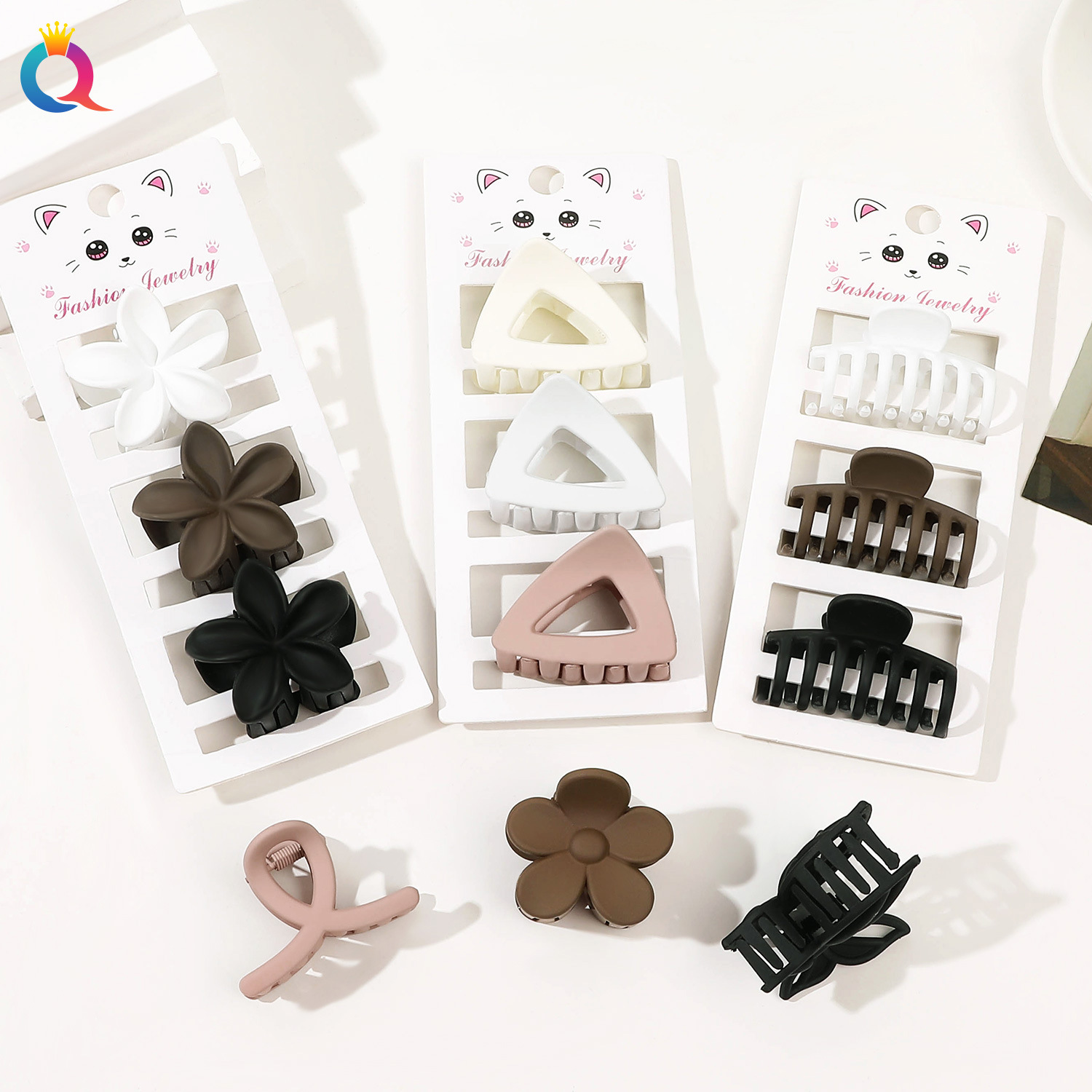 Qiyue 크로스 보더 3 피스 작은 머리핀 플레이트 헤어 작은 그립 한국 버전 높은 포니 테일 헤어 그립 상어 클립 헤어 액세서리 도매