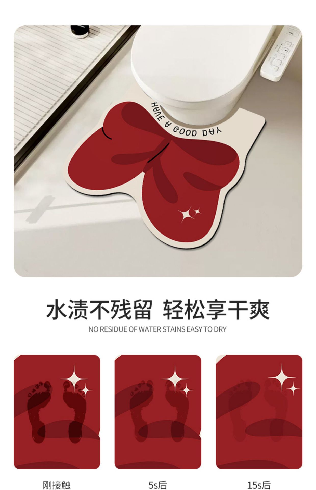 Bowknot 화장실 U 자형 매트 욕실 화장실 화장실 물 흡수성 매트 미끄럼 방지 방수 가정용 발 매트스토어 가기