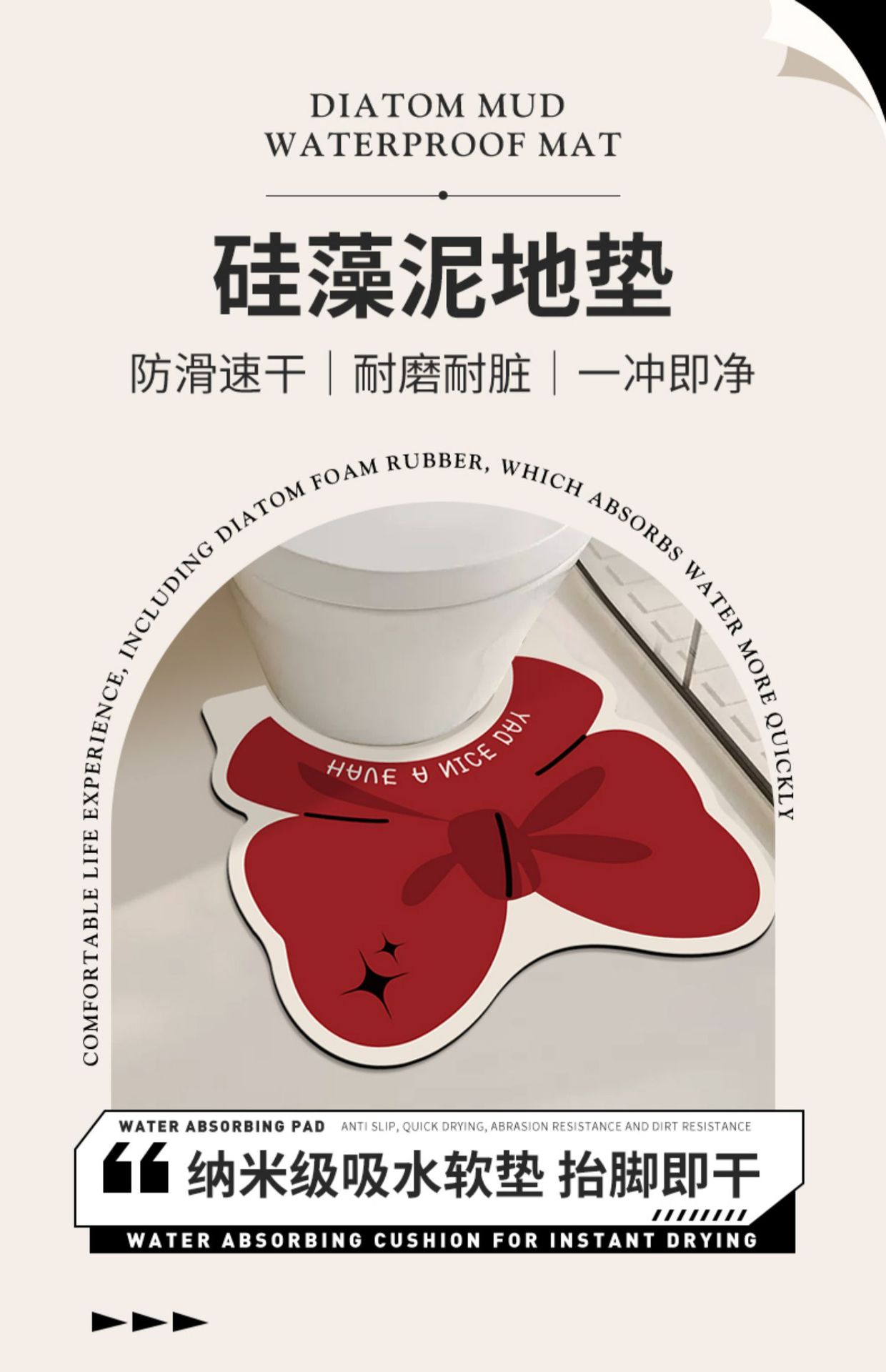 Bowknot 화장실 U 자형 매트 욕실 화장실 화장실 물 흡수성 매트 미끄럼 방지 방수 가정용 발 매트