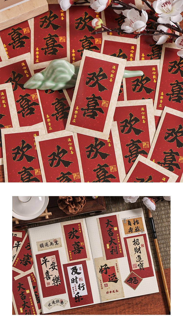 Yuezhen Fuwarm 사계절 중국 스타일 비행기 상자 밀봉 스티커 텍스트 밀봉 스티커 높은 색 가치 손 계정 스티커스토어 가기