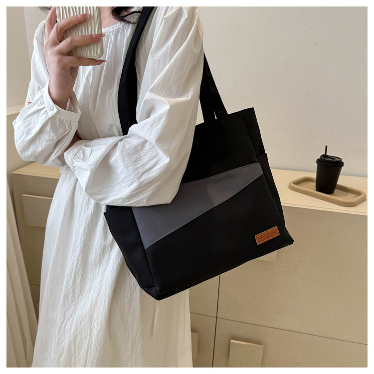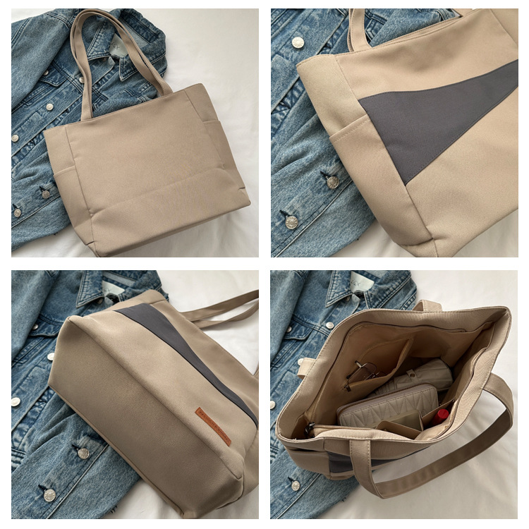 여성 학생을위한 지퍼가있는 간단하고 세련된 토트 백 대용량 2024 새로운 여성 가방 올 매치 캐주얼 숄더 백