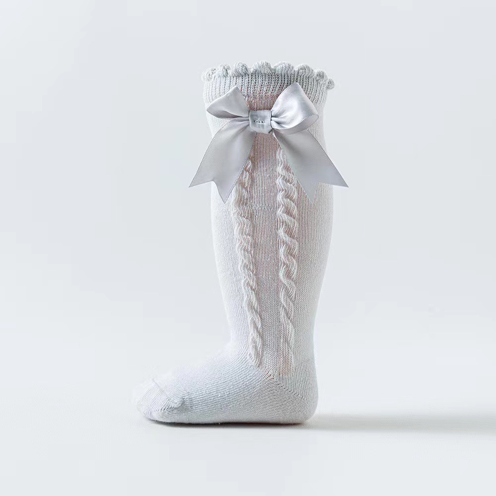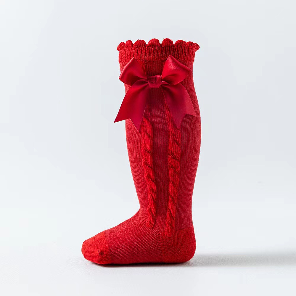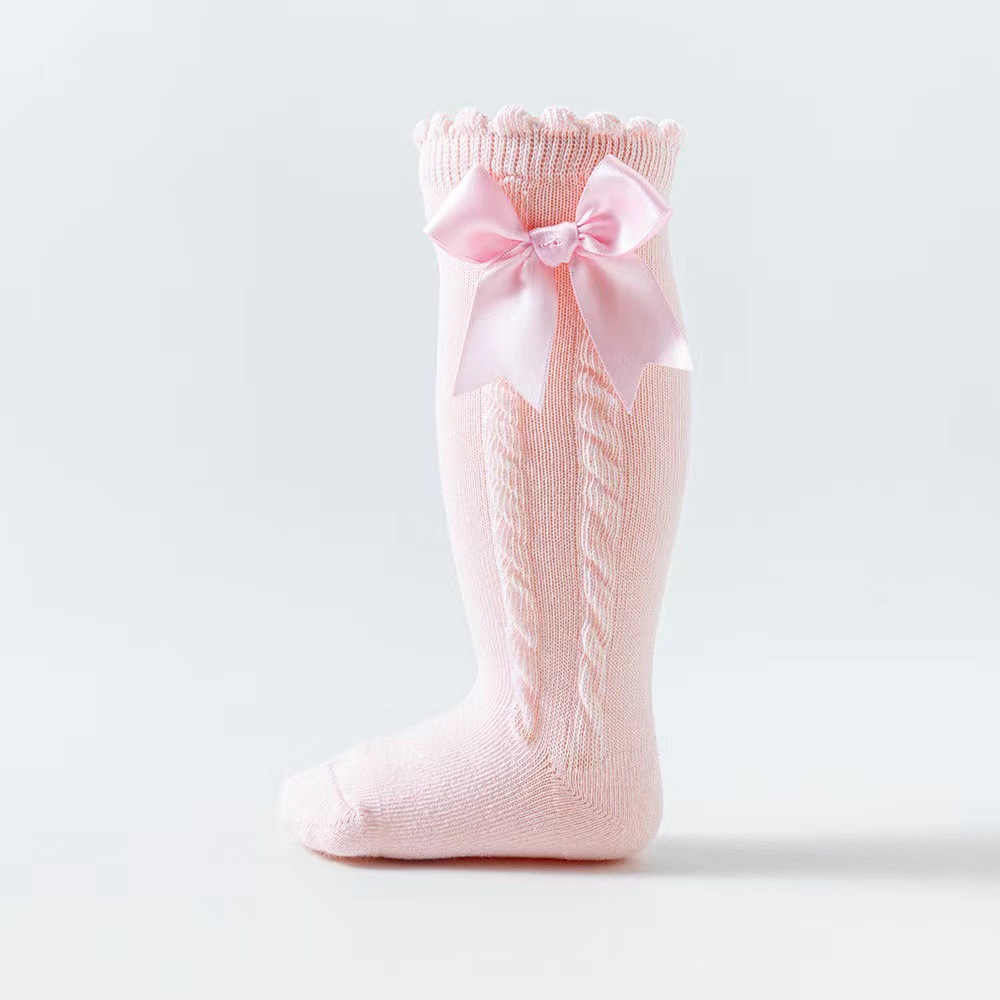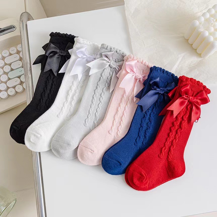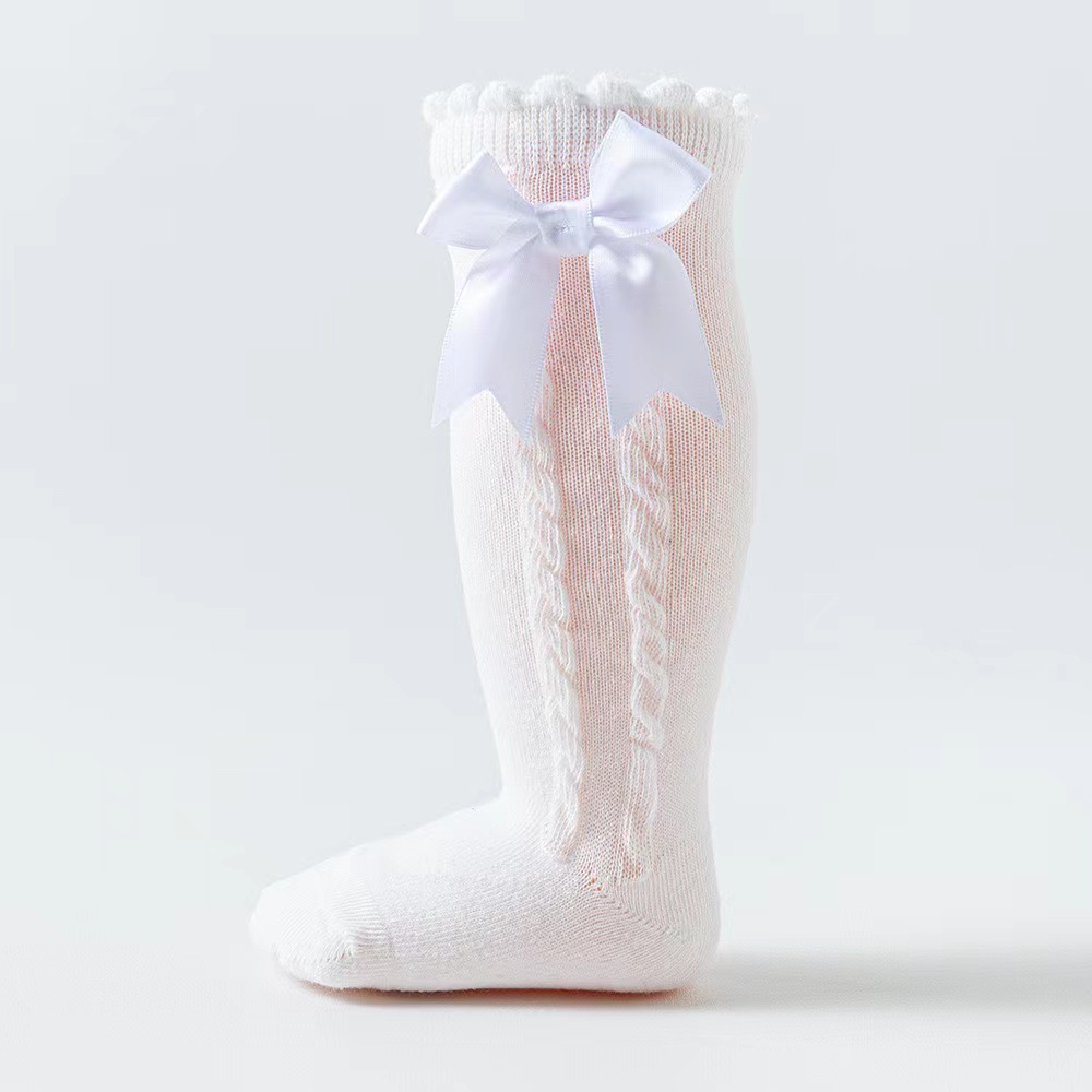 국경을 넘는 새로운 아기 소녀 나비 매듭 빗은면 트위스트 튜브 양말 긴 양말 달콤한 어린이 봄과 가을