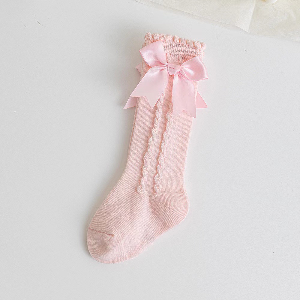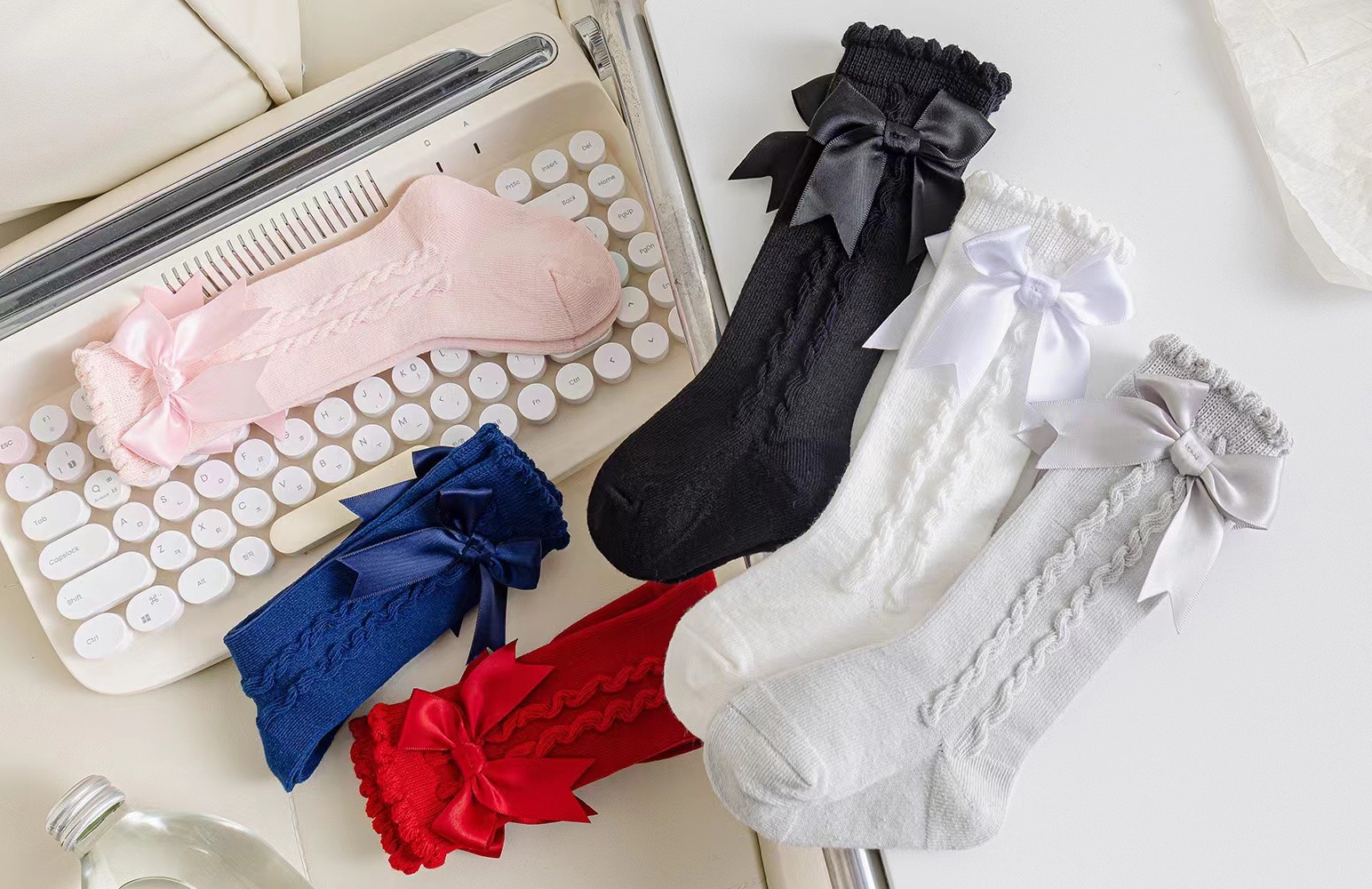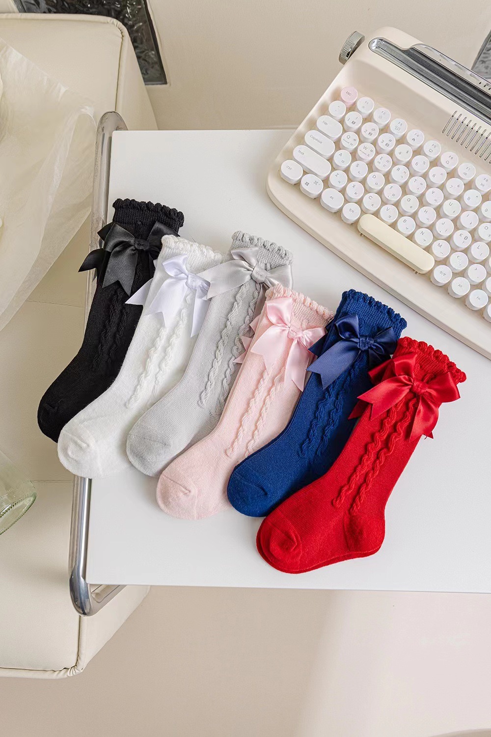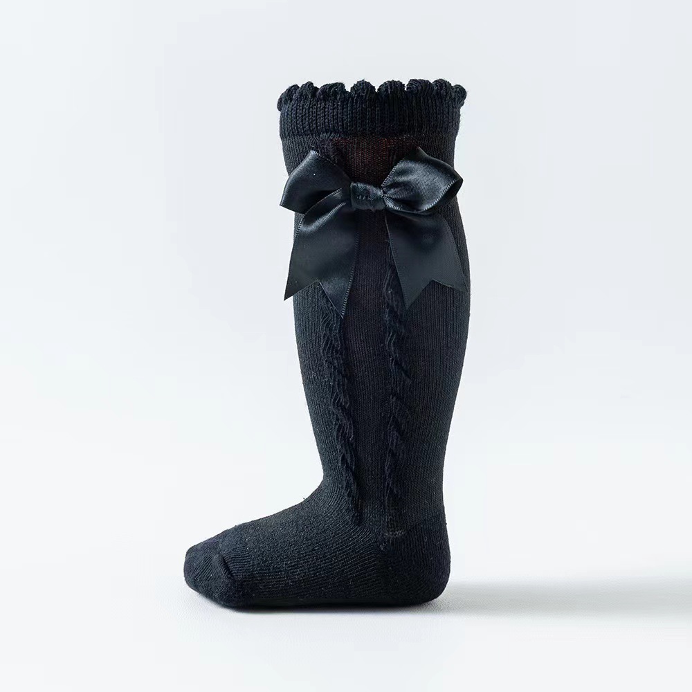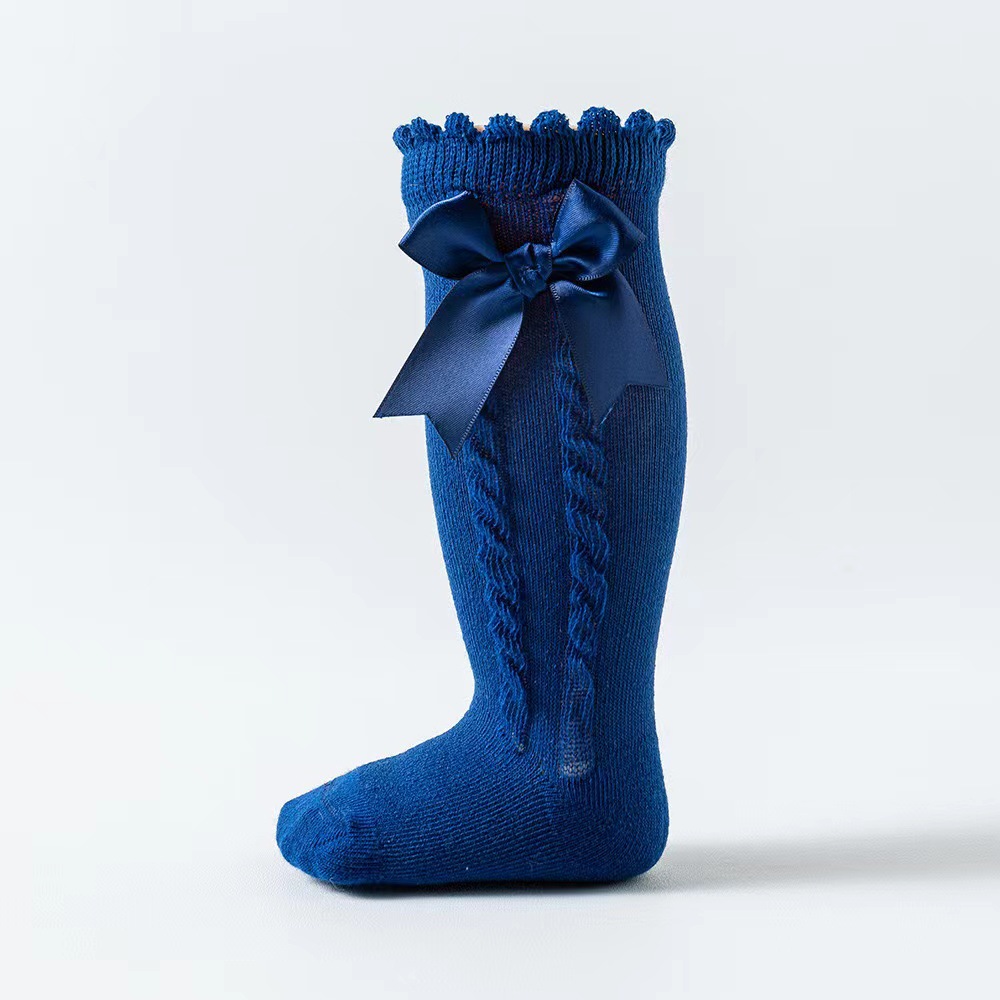 국경을 넘는 새로운 아기 소녀 나비 매듭 빗은면 트위스트 튜브 양말 긴 양말 달콤한 어린이 봄과 가을