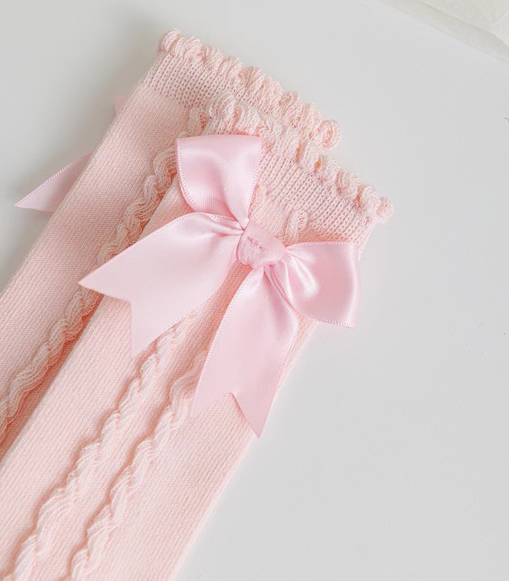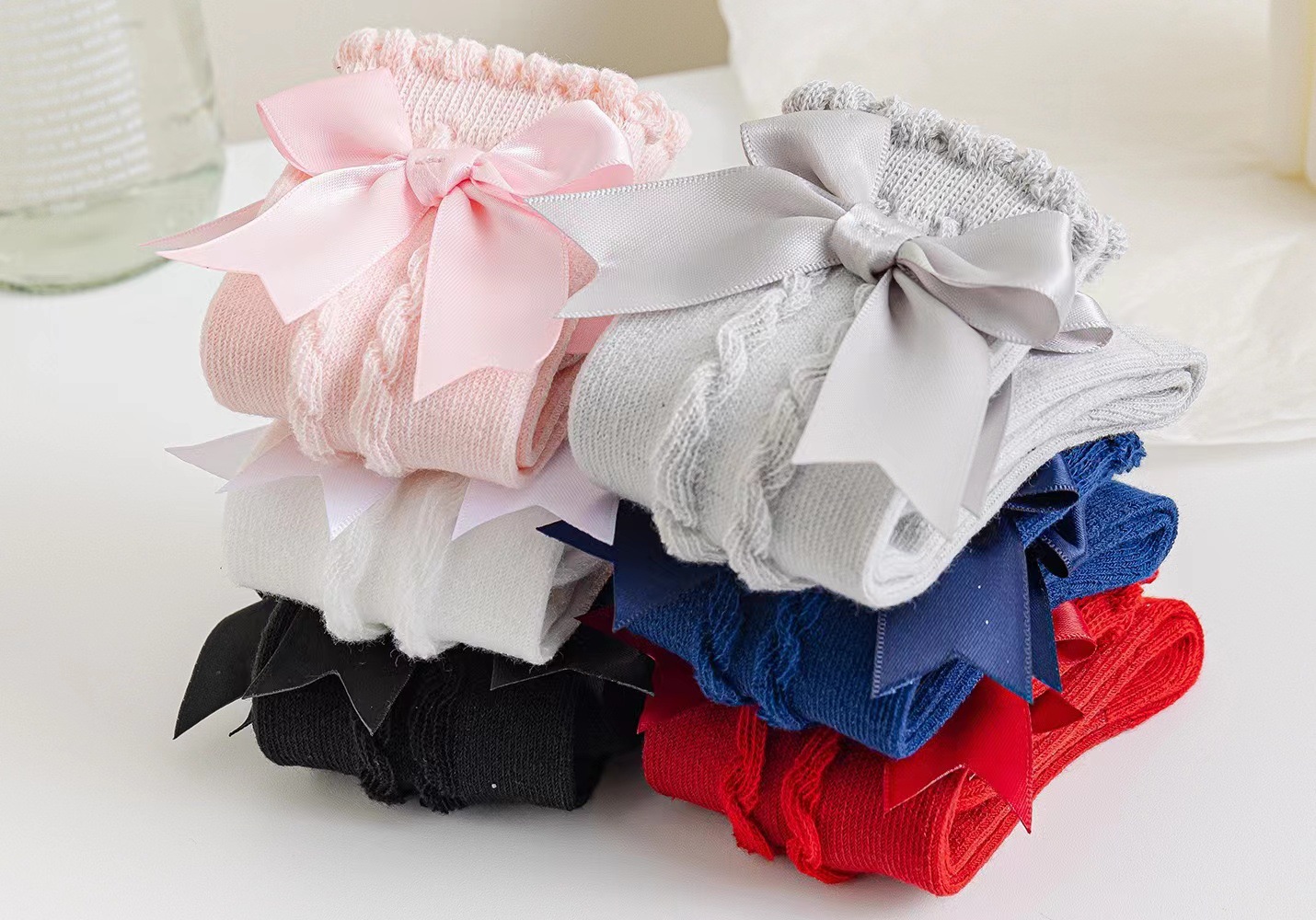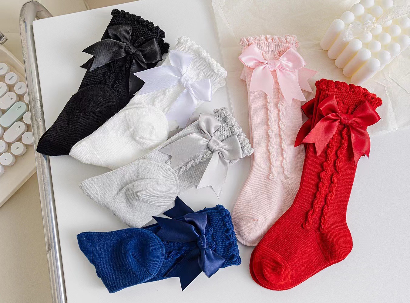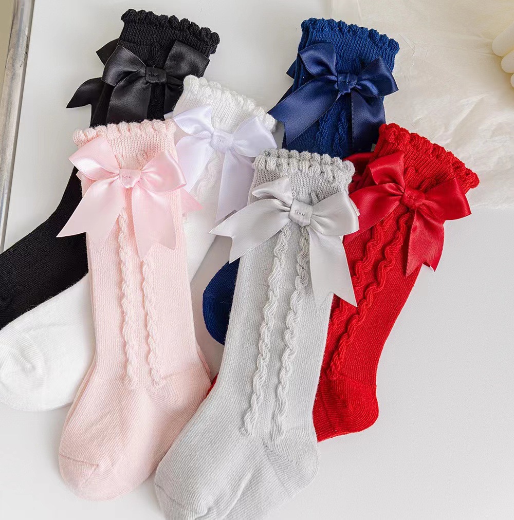 국경을 넘는 새로운 아기 소녀 나비 매듭 빗은면 트위스트 튜브 양말 긴 양말 달콤한 어린이 봄과 가을
