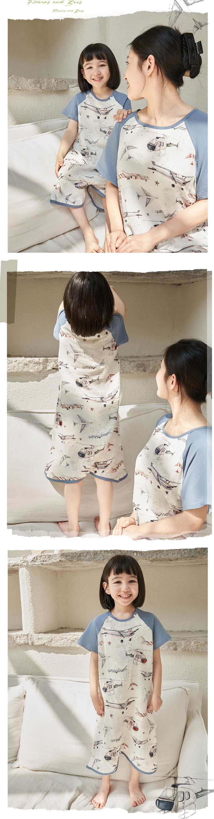 안단 슬리핑 백 아기 봄과 여름 얇은 대나무 면 거즈 아기 잠옷 어린이 Nightdress jumpsuit 부모-어린이 홈 옷스토어 가기
