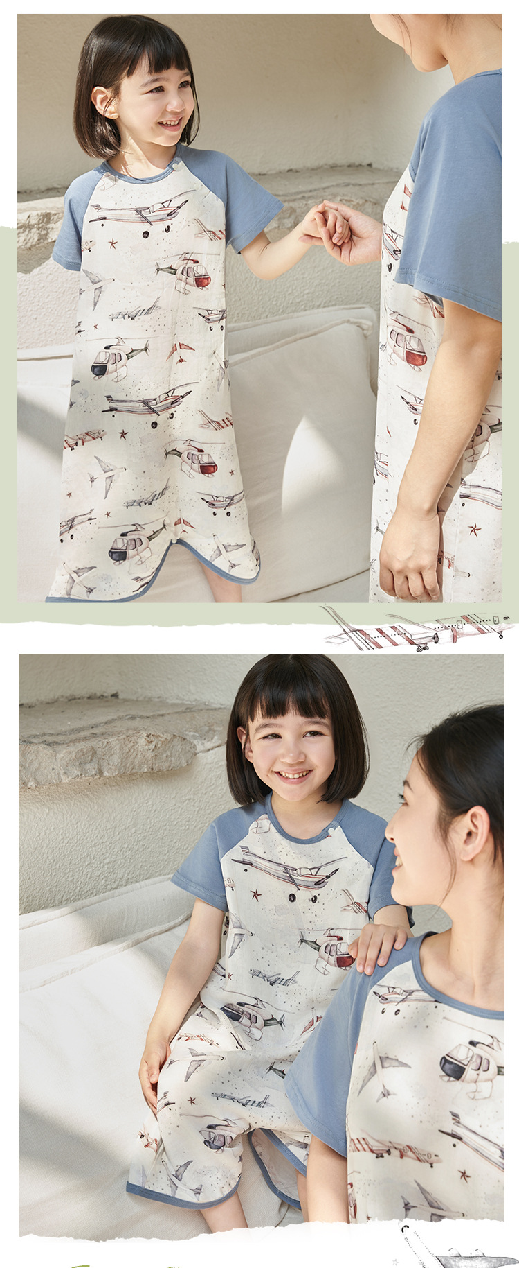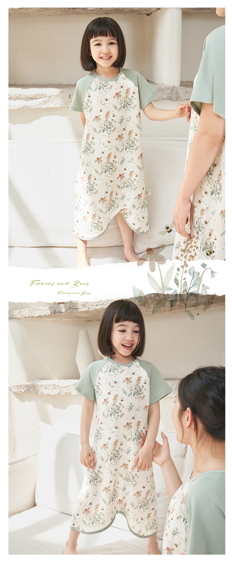 안단 슬리핑 백 아기 봄과 여름 얇은 대나무 면 거즈 아기 잠옷 어린이 Nightdress jumpsuit 부모-어린이 홈 옷