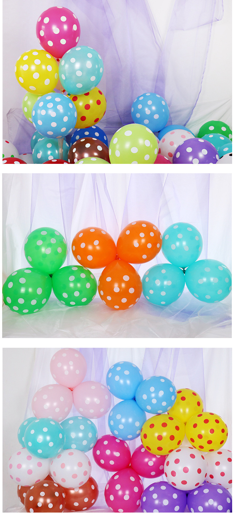 12 인치 두꺼운 웨이브 도트 라텍스 풍선 다채로운 창조적 인 폴카 도트 스팟 라운드 풍선 웨딩 룸 장식 풍선스토어 가기