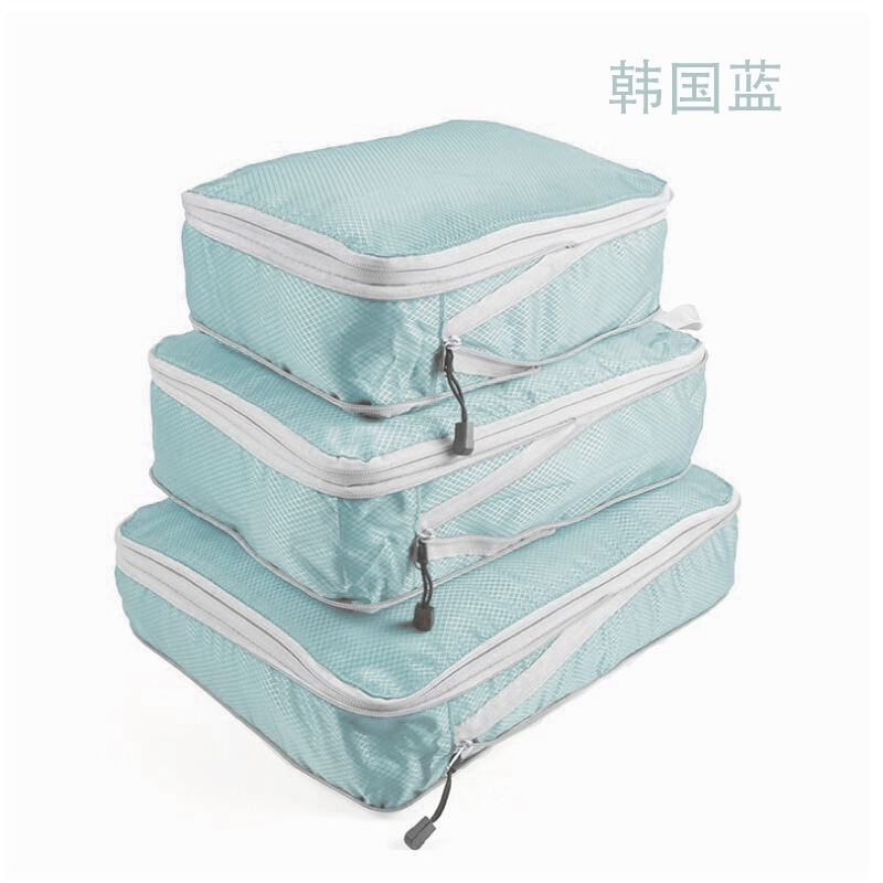 • 여행용 수납 정리 압축 3종 세트 (망사 없음) - 한국 블루