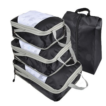 • 여행용 수납 파우치 블랙 여행용 압축 수납 백 압축 3종 세트 + 신발 가방 [메쉬 포함]