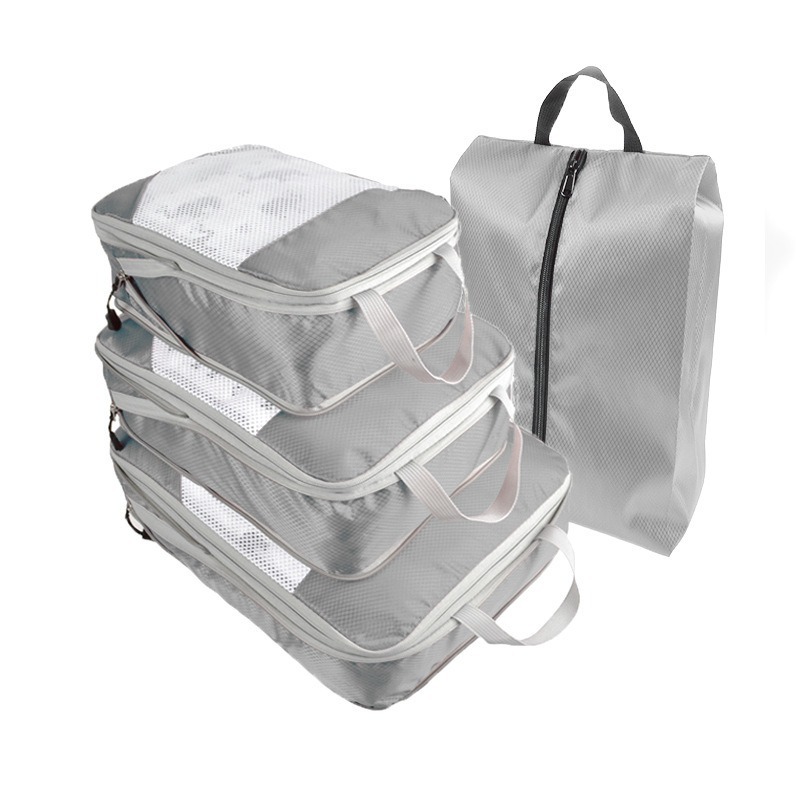 • 그레이 여행용 수납가방 압축 3종세트 + 신발가방 [망 없음]