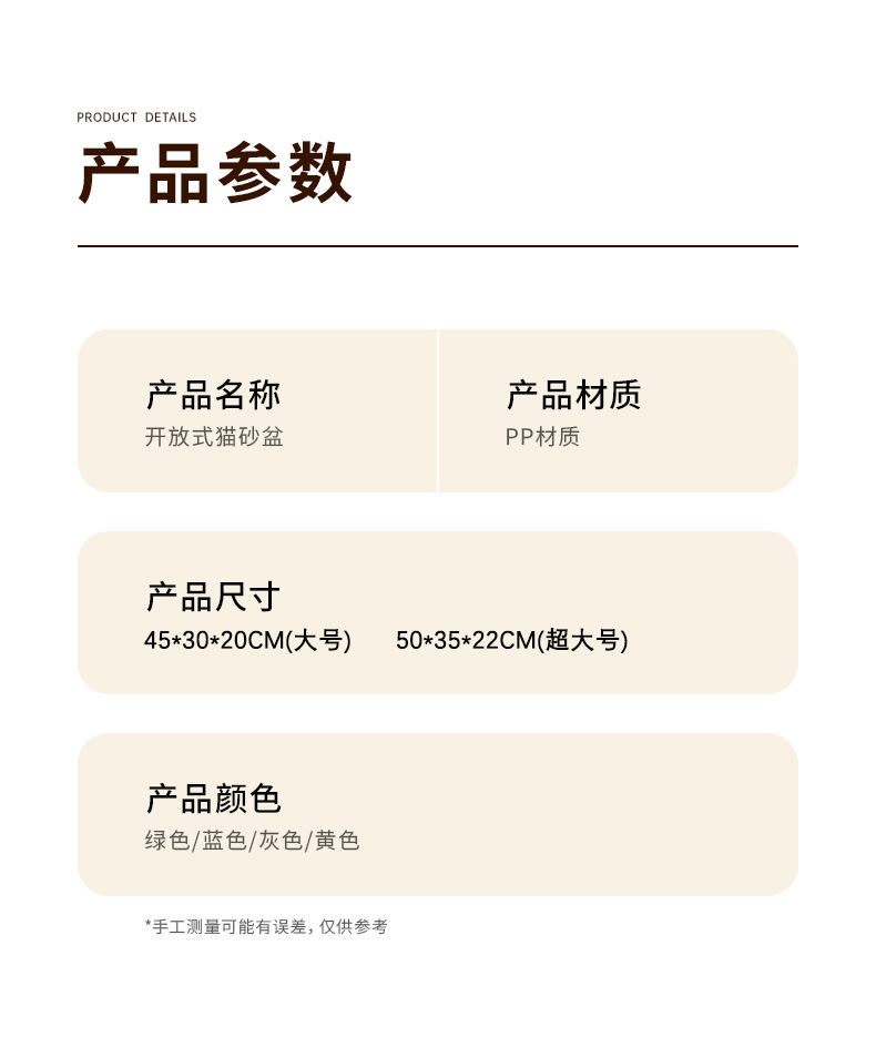 产品名称:开放式大容量猫砂盆