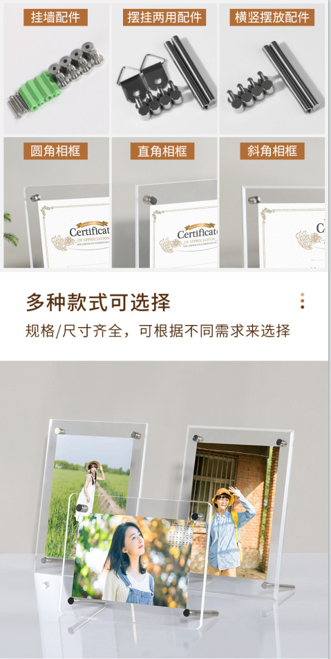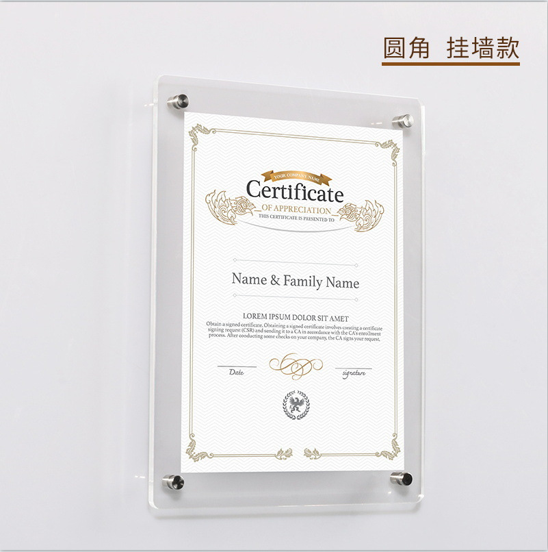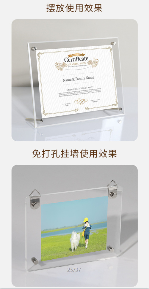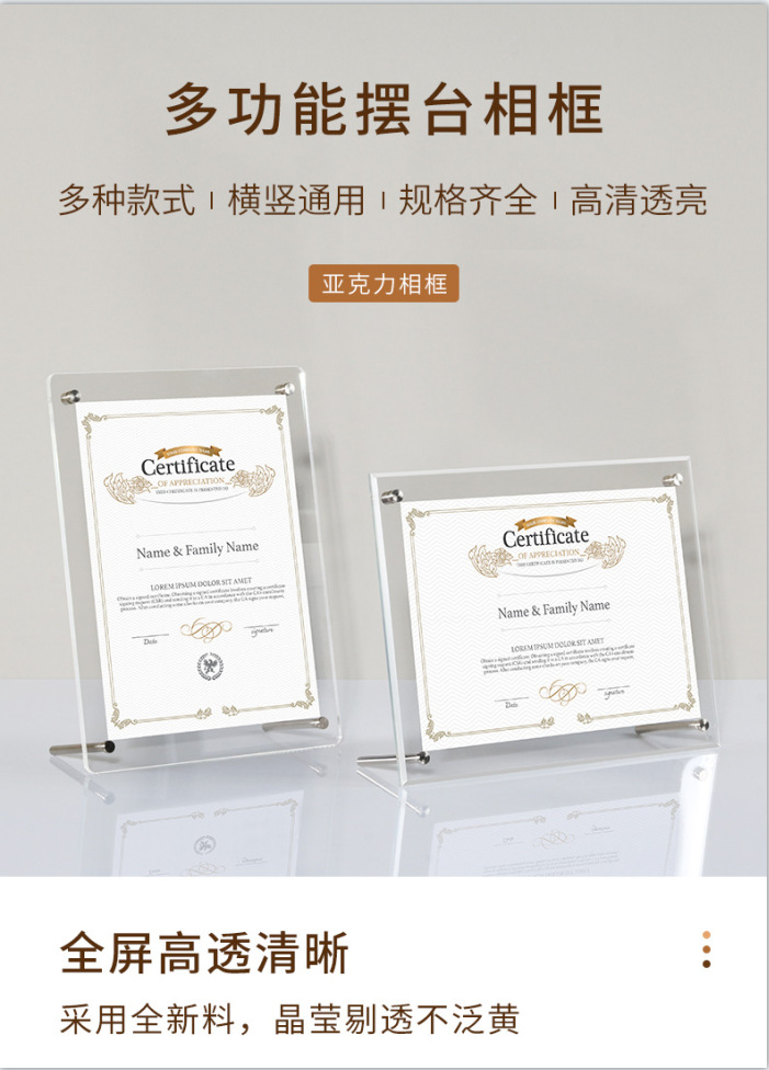 투명 아크릴 사진 프레임 A4 명예 인증 메달 상 프레임 크리스탈 사진 프레임 세트 테이블 비즈니스 라이센스 프레임스토어 가기