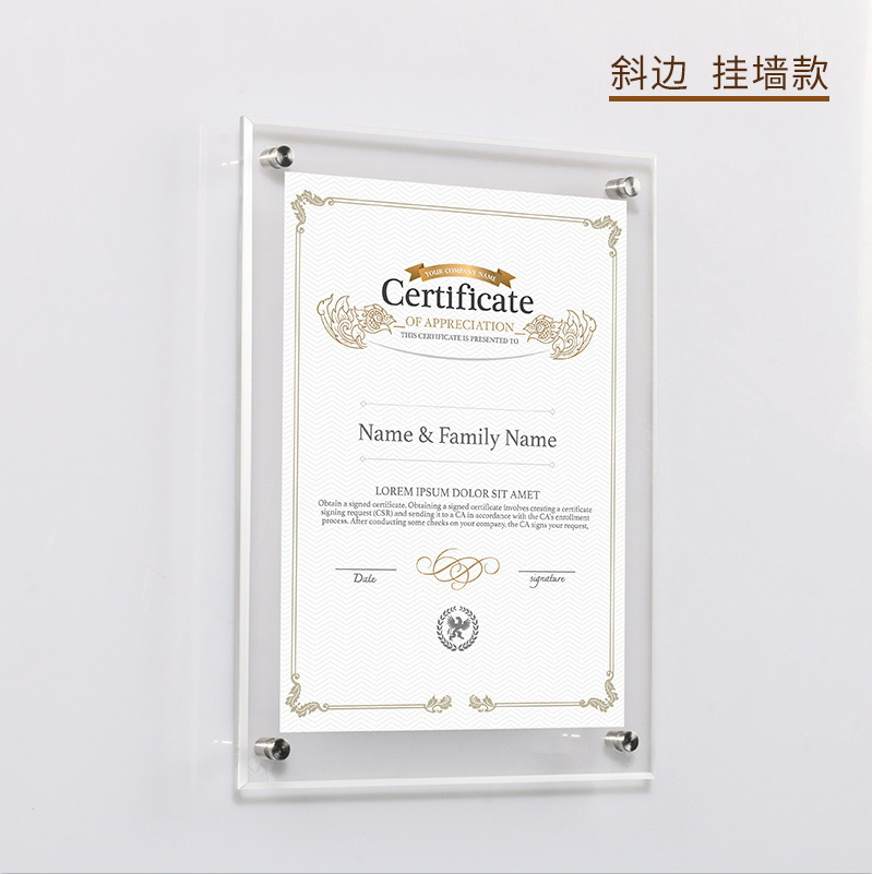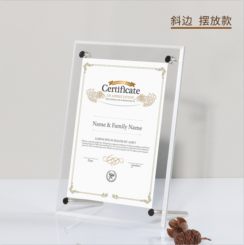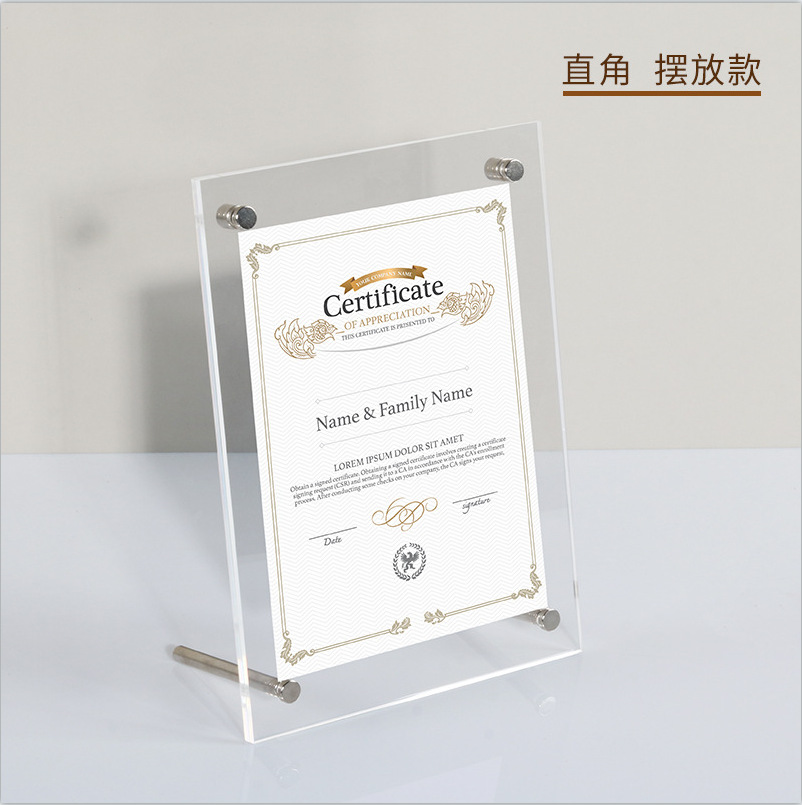 투명 아크릴 사진 프레임 A4 명예 인증 메달 상 프레임 크리스탈 사진 프레임 세트 테이블 비즈니스 라이센스 프레임