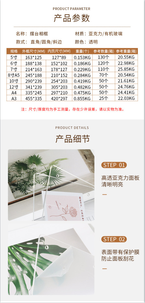 • 8 인치 A5 (내부 프레임 152*210mm) 두께 3MM