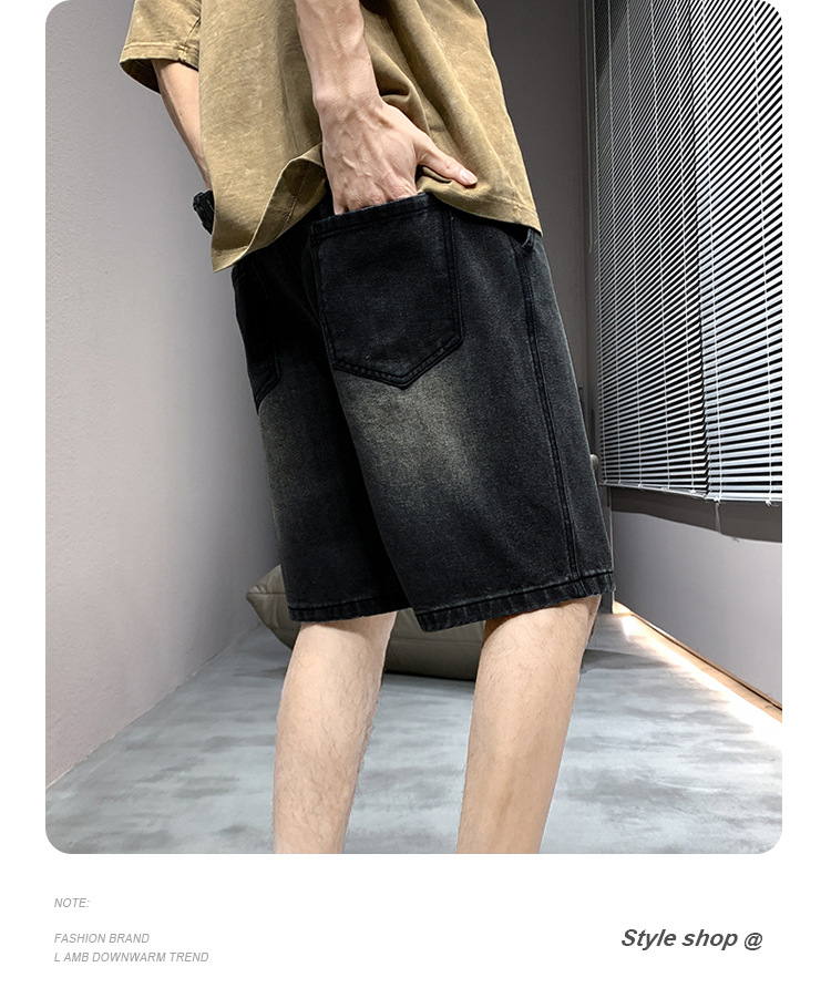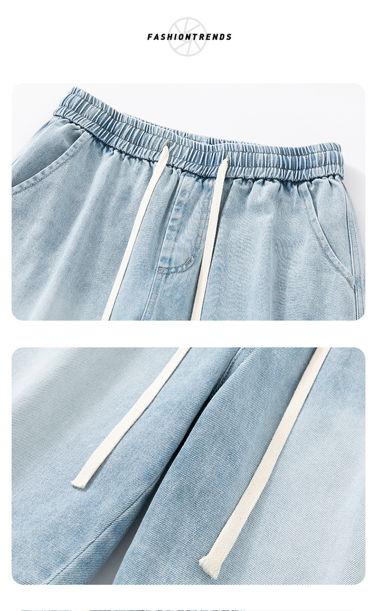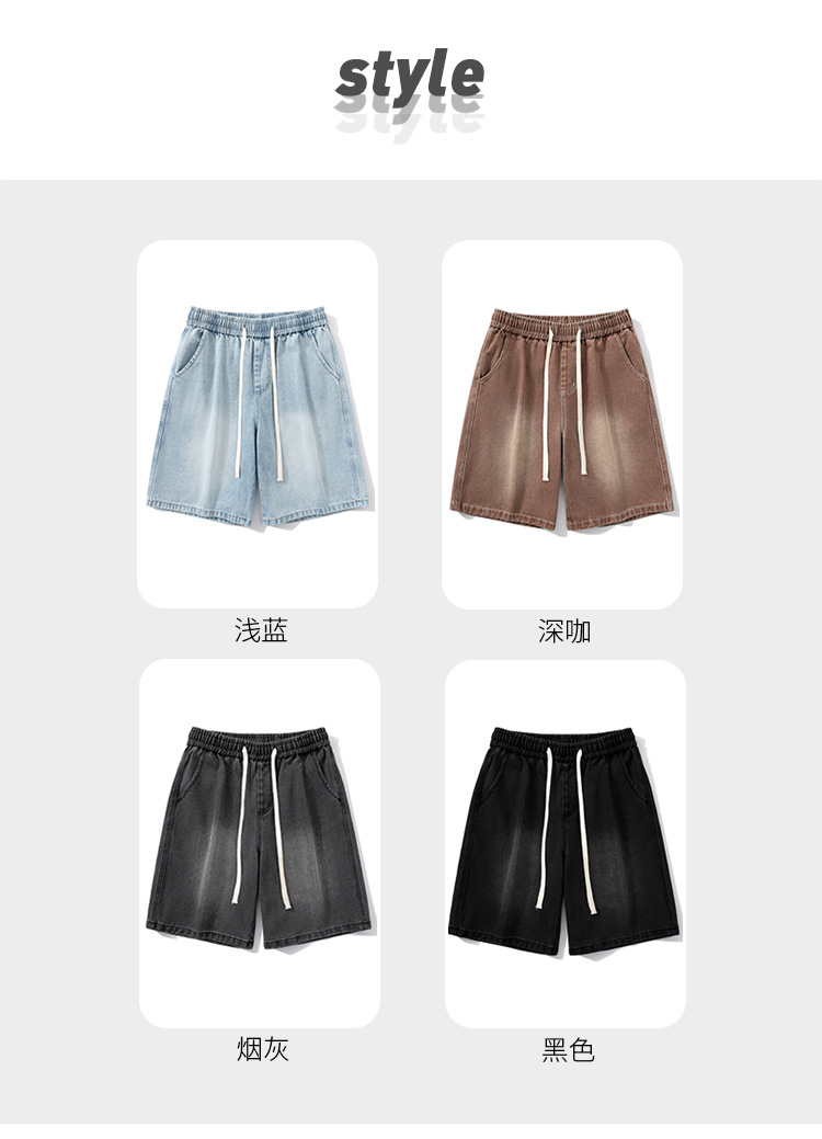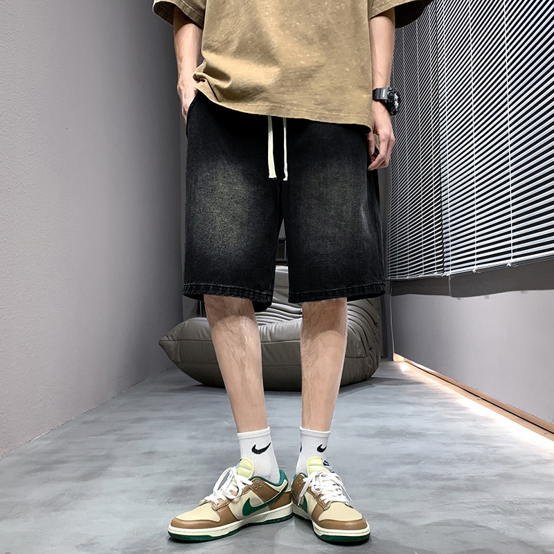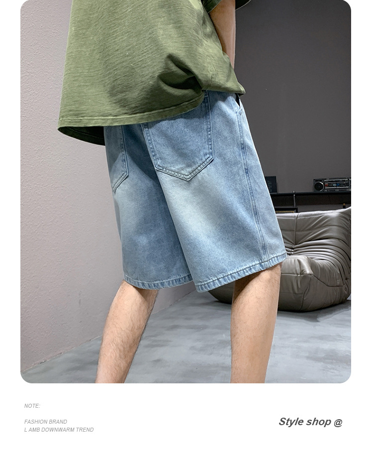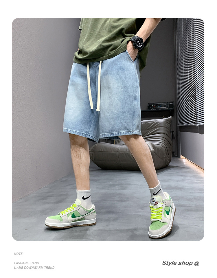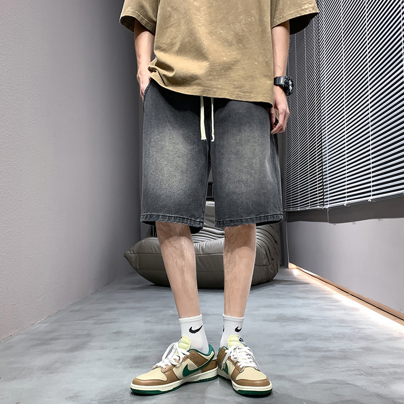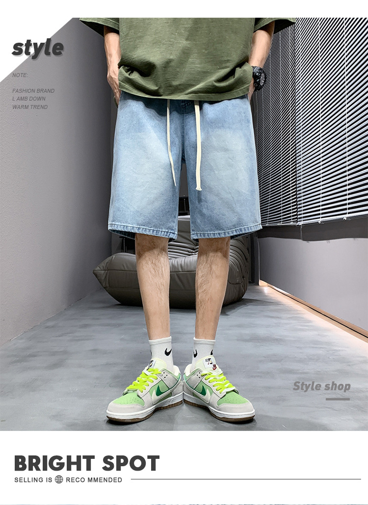 데님 반바지 남자 밝은 색 여름 얇은 트렌디 브랜드 스트레이트 루즈 데님 중간 길이 바지 캐주얼 올 매치 바지 세탁 바지스토어 가기