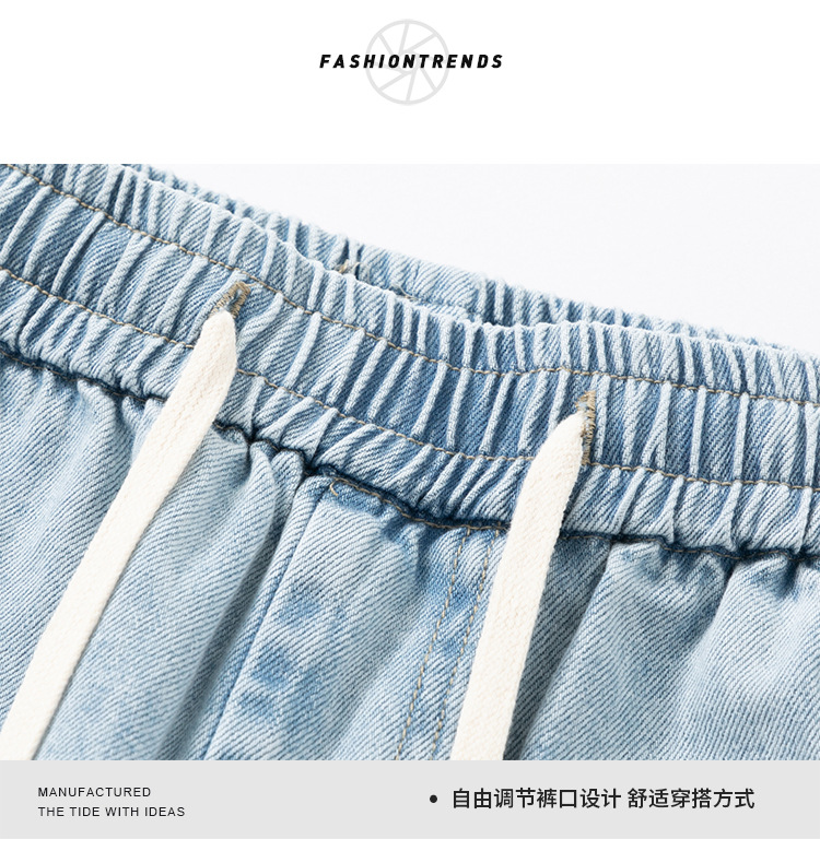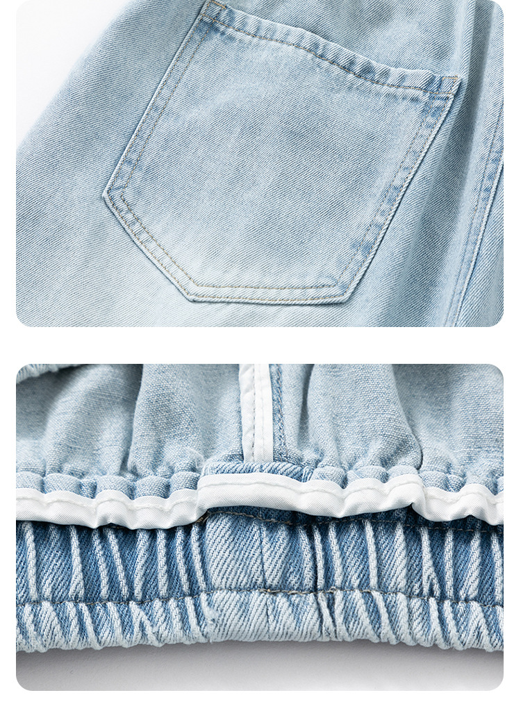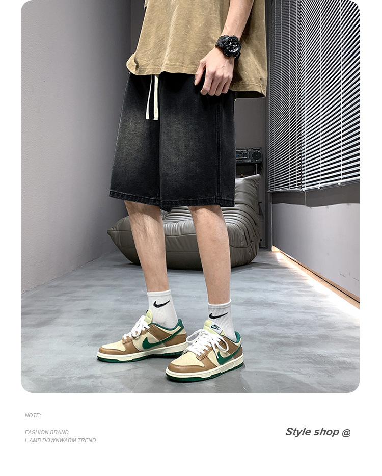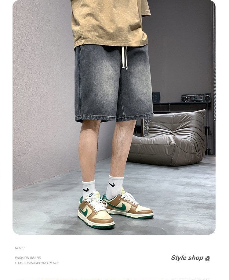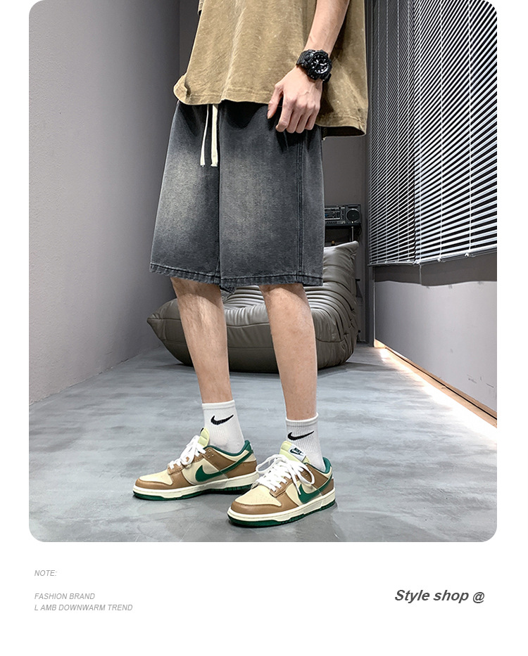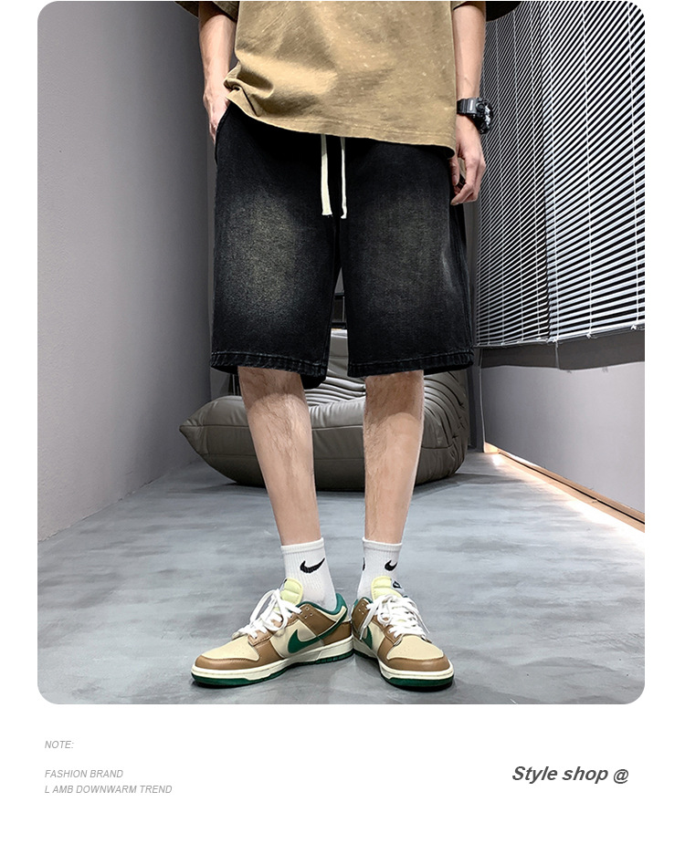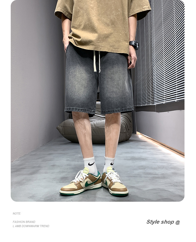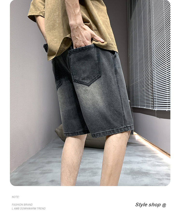 데님 반바지 남자 밝은 색 여름 얇은 트렌디 브랜드 스트레이트 루즈 데님 중간 길이 바지 캐주얼 올 매치 바지 세탁 바지스토어 가기