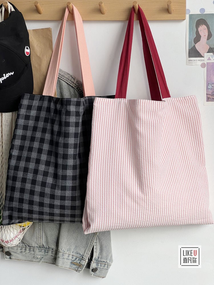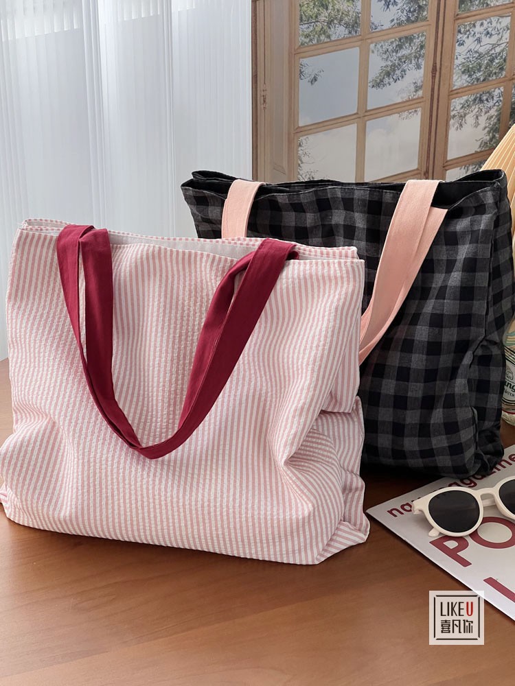 오리지널 틈새 디자인 한국 스타일 격자 무늬 캔버스 멀티 레이어 토트 요가 백 예술적 레저 숄더 캔버스 백스토어 가기