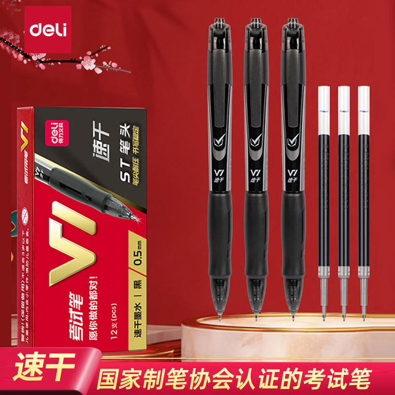 델리 V1 테스트 특수 펜 젤 펜 빠른 드라이 스트 중학교 입학 시험 준비 V77 브러시 질문 0.5mm 프레스 펜 블랙스토어 가기